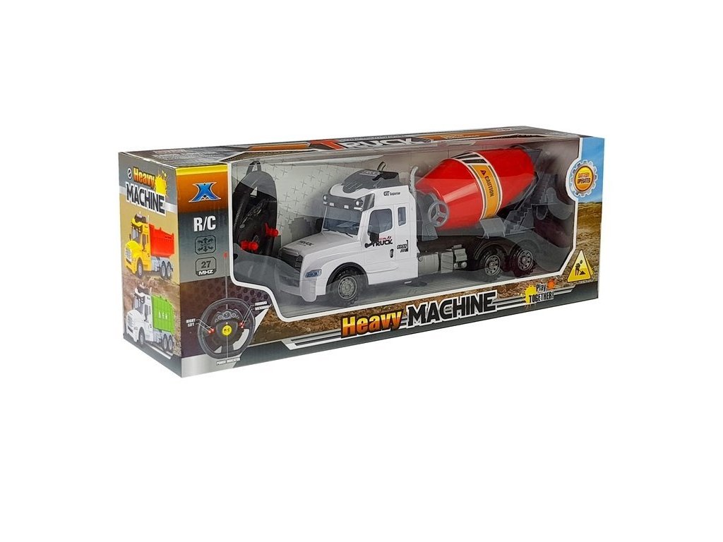 Diaľkovo ovládané stavebné vozidlo pre deti je namontované na plastových kolesách s dezénom, vďaka čomu sa s ním dá hrať na rôznych povrchoch. Biela betónová miešačka s červeným výtokom je zdobená kontrastnými čiernymi detailmi a výraznými nálepkami.