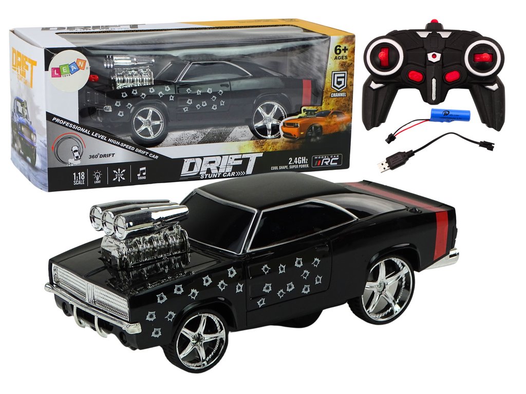 Diaľkovo ovládané auto 1:18 Drift 360 Svetlá Zvuky Čierne