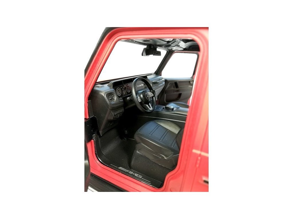 Diaľkovo ovládaný Mercedes G63 v červenej farbe je autentickou replikou v mierke 1:14. Auto sa dá diaľkovým ovládaním pohybovať dopredu, dozadu, otáčať a brzdiť. Vďaka svojim terénnym vlastnostiam sa dá používať ako v interiéri, tak aj v exteriéri. Svetlá vozidla sa rozsvietia pri naštartovaní a počas jazdy. Dvere vozidla sa otvárajú manuálne a interiér a podvozok sú navrhnuté s veľkým dôrazom na detaily, aby zodpovedali originálnemu vozidlu. Diaľkovo ovládaný Mercedes sa ovláda pomocou rádiového diaľkového ovládania a dosahuje rýchlosť 7 kilometrov za hodinu. Diaľkové ovládanie má dosah niekoľko metrov a na rozdiel od infračervených diaľkových ovládačov sa dá bez problémov používať vonku na plnom slnku.