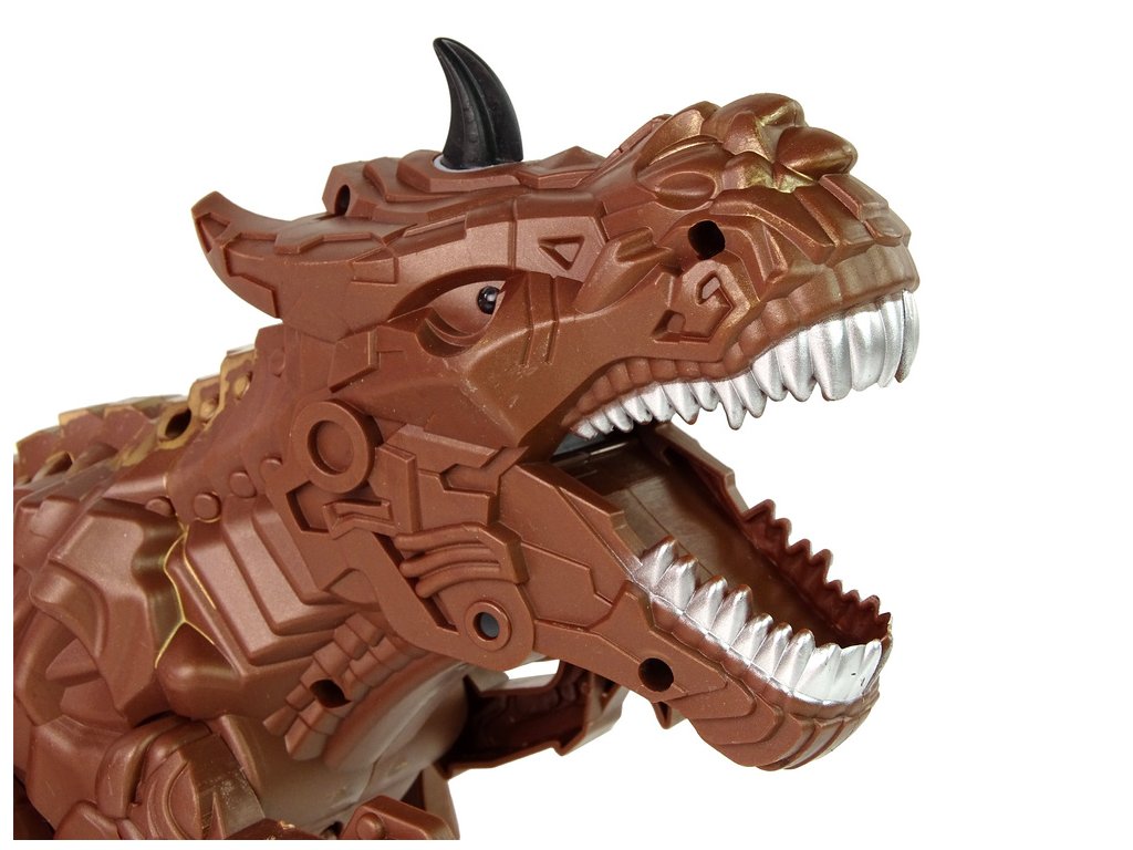 Hnedý dinosaurus sa pohybuje dopredu, keď ovládate diaľkové ovládanie. Má tiež zvukové efekty, ako je hlasné revanie a žiariace oči, ktoré vzbudzujú úžas. Pod bruchom sa nachádza malý projektor, ktorý zobrazuje skutočného dinosaura v jeho prirodzenom prostredí.