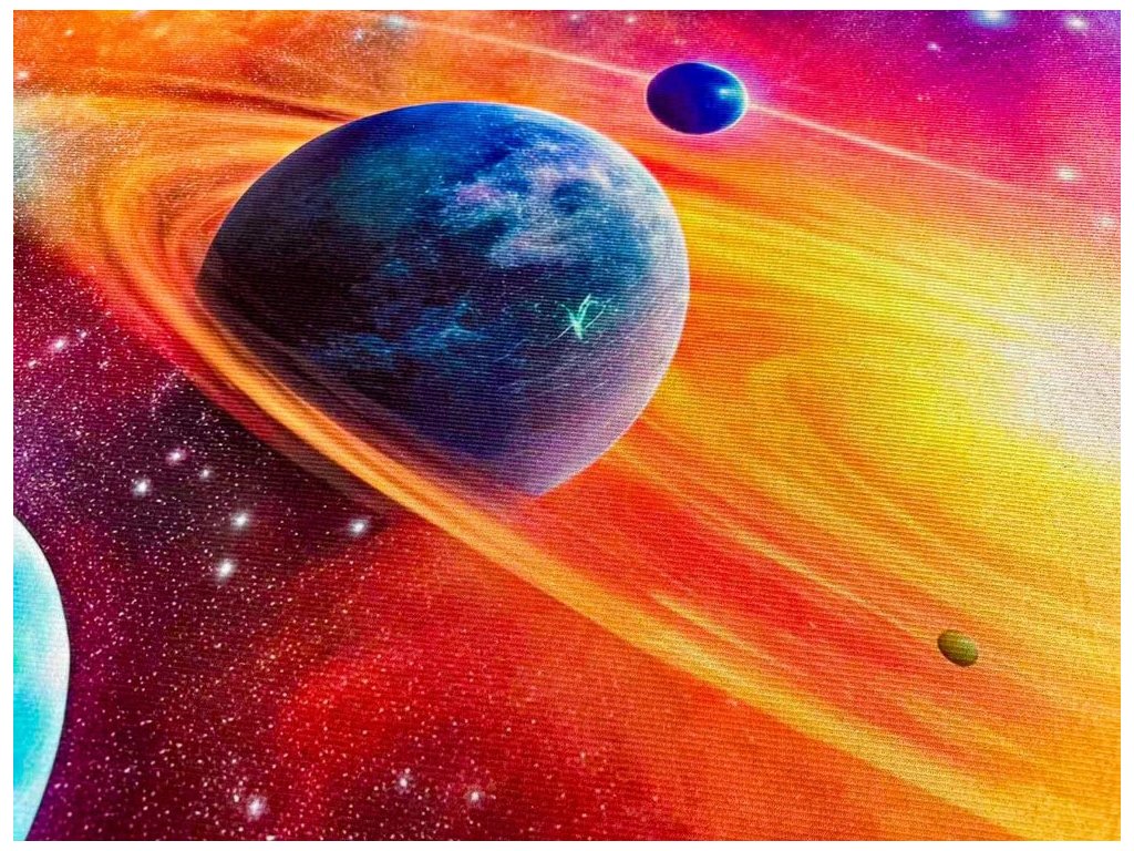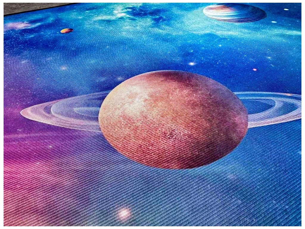 Dizajnový koberec GALAXIA je ideálnym doplnkom pre každého, kto miluje farby, fantáziu a pohľad do nekonečného vesmíru. Jeho živý, pestrofarebný dizajn zachytáva planéty, hviezdy a kozmické javy, ktoré okamžite premenia miestnosť na dynamický a inšpiratívny priestor. Vďaka detailnej a výraznej potlači pôsobí koberec ako umelecké dielo, ktoré zaujme na prvý pohľad a dodá interiéru osobitosť.