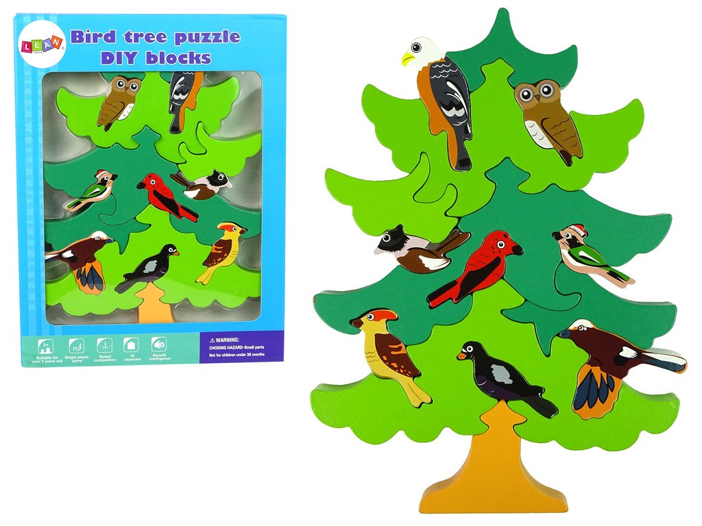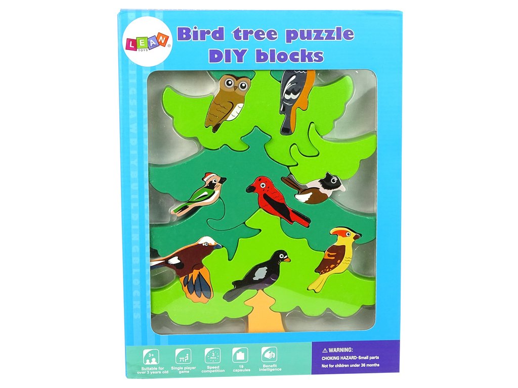 Drevený vtáčí strom DIY Drevené puzzle bloky trojrozmerné