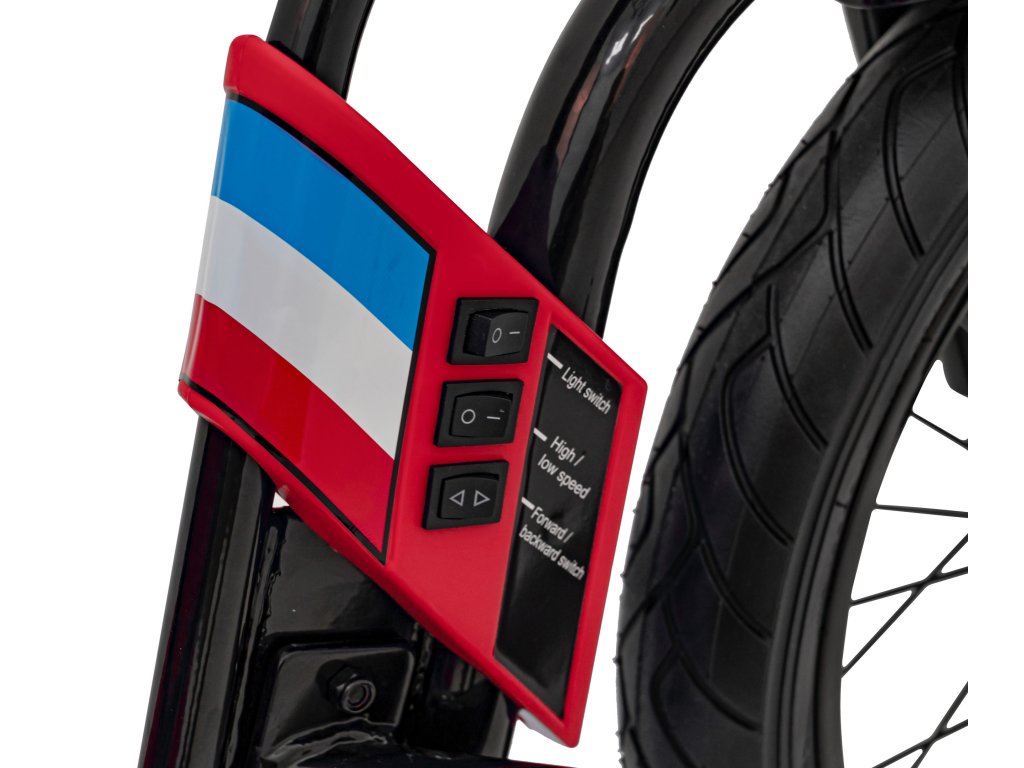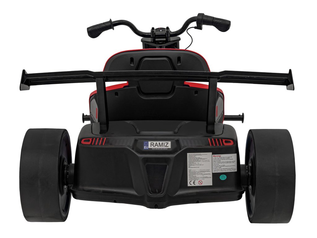 - Kolesá: Predné: nafukovacie, lúčové 41 x 7 cm Zadné: plastové pre funkciu DRIFT 28 x 11 cm