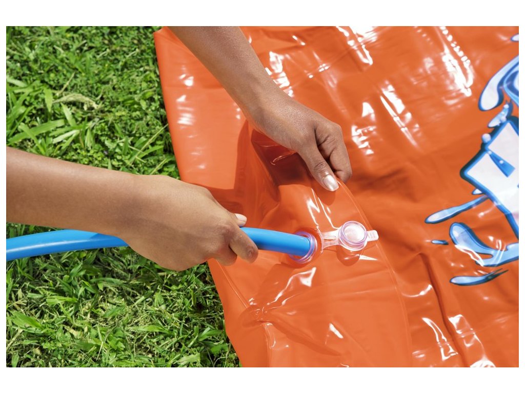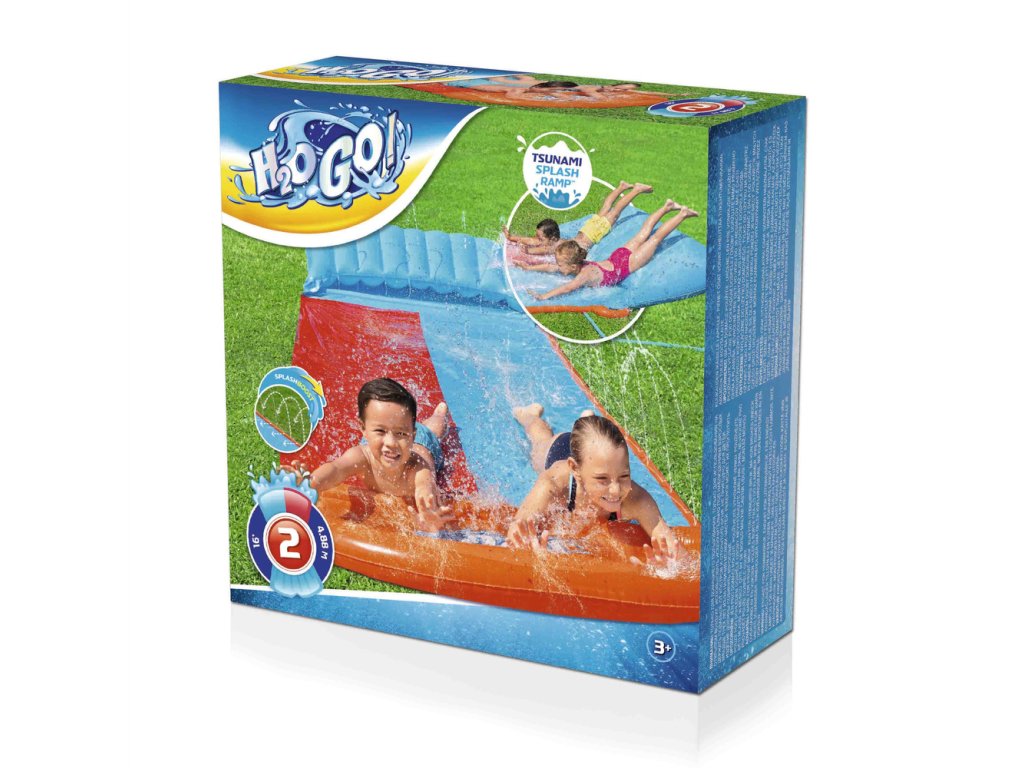 Tento tobogan pre dve osoby poskytne klasickú, nadčasovú zábavu na dvore pre všetky deti nad 3 roky. Bude to ideálny spôsob, ako tráviť voľný čas, a zaujímavá forma zábavy. Stačí rozbaliť tobogan, pripevniť ho k zemi a pripojiť záhradnú hadicu. Vďaka špeciálnym bezpečnostným prvkom, ktoré sú súčasťou sady, sa šmýkačka nebude pohybovať. Šmýkačka s dĺžkou 4,88 m je ideálna na sólo rýchlostné súťaže alebo striedanie sa s priateľmi. Vodné lieviky v bazéne na konci spôsobujú veľký šplech na cieľovej čiare. Vstavané postrekovače sú špeciálne navrhnuté pre efektívnejšie pokrytie a poskytujú kaskádový efekt, vďaka čomu zostáva šmýkačka kĺzavá.