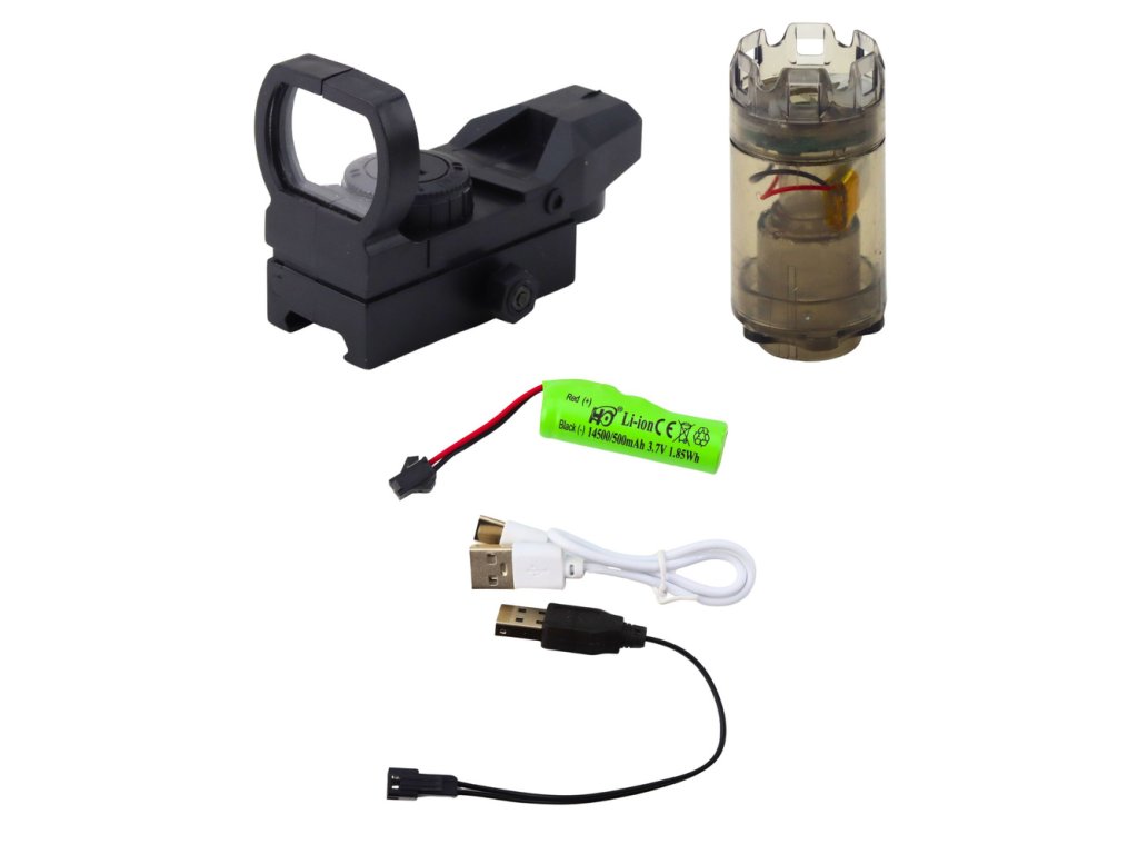 Pištole je napájaná nabíjateľnou batériou, ktorú je možné nabíjať pomocou priloženého USB kábla. Súprava obsahuje aj mieridlo, hlavňovú špičku, batériu, kábel a zásobník na vodu. Vďaka pevnej konštrukcii a modernému dizajnu je to jeden z najatraktívnejších vodných modelov na trhu.
