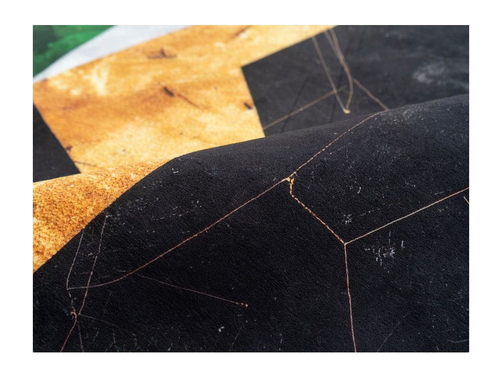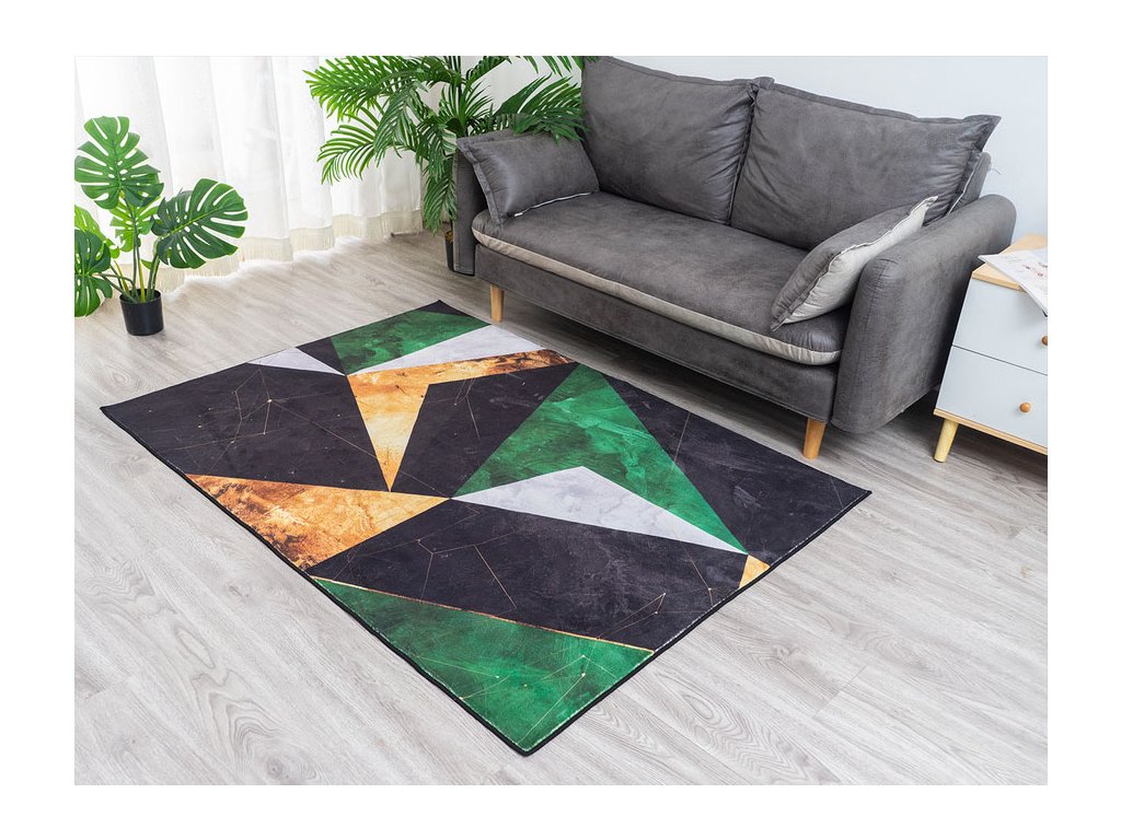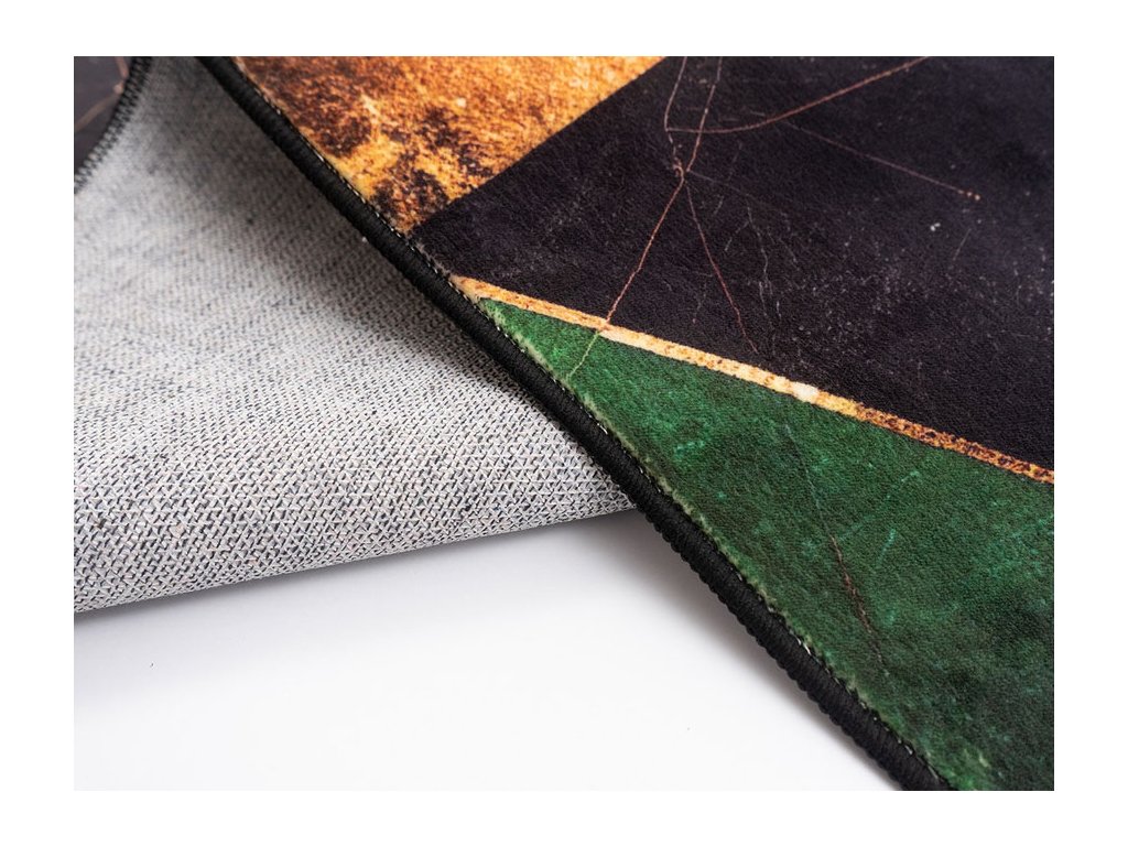 Geometrický koberec Terra je výrazným dizajnovým prvkom, ktorý okamžite pritiahne pozornosť. Kombinácia sýtych zelených, zlatých, čiernych a neutrálnych tónov vytvára dynamickú kompozíciu inšpirovanú prírodou, architektúrou a moderným umením. Tento farebný koberec je ideálnou voľbou pre interiéry, ktoré chcú pôsobiť originálne, sebavedomo a štýlovo.