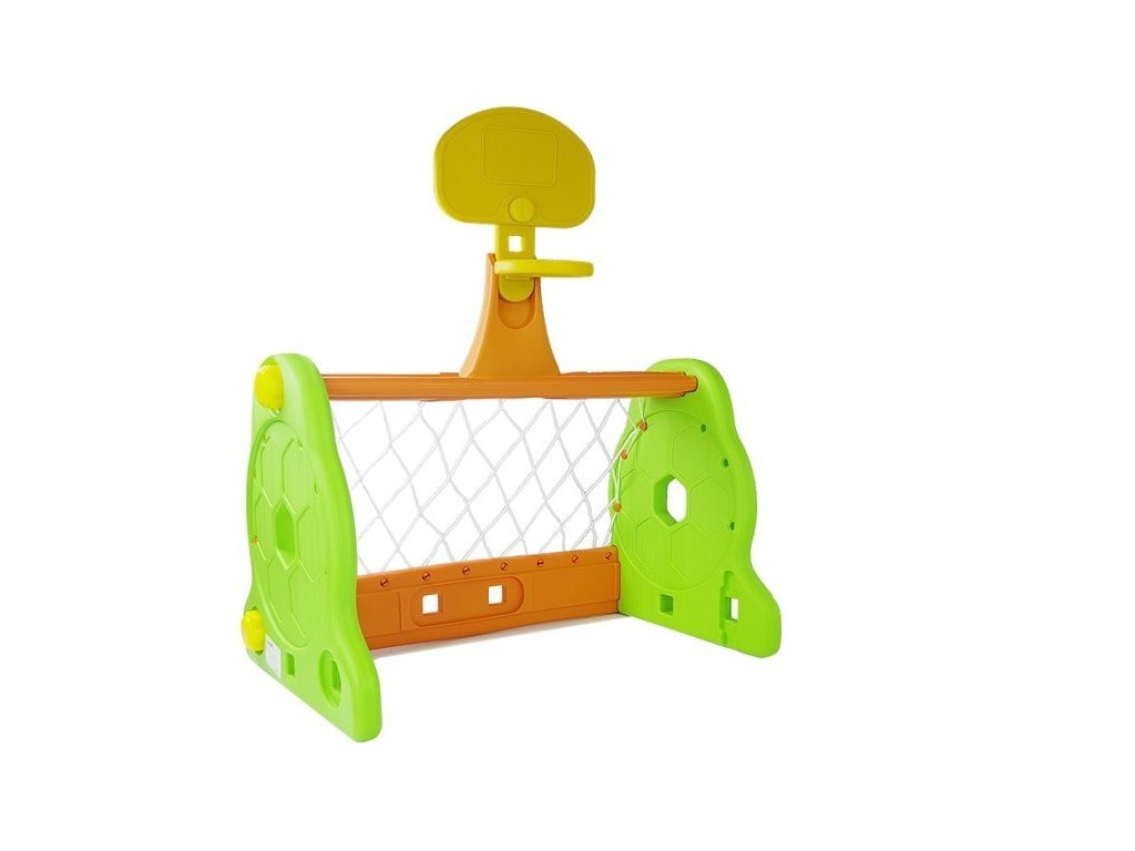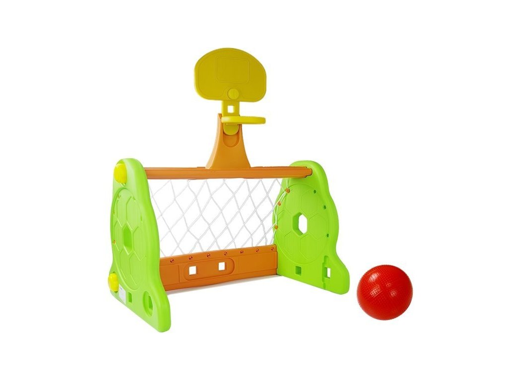 Táto sada obsahuje plastovú zelenú bránku so sieťou a nafukovaciu červenú loptu, takže môžete hrať kedykoľvek a kdekoľvek! V strede bránky je umiestnený basketbalový kôš, ktorého výšku je možné nastaviť. Presnosť streľby do koša a streľby na bránku bude perfektne trénovaná.