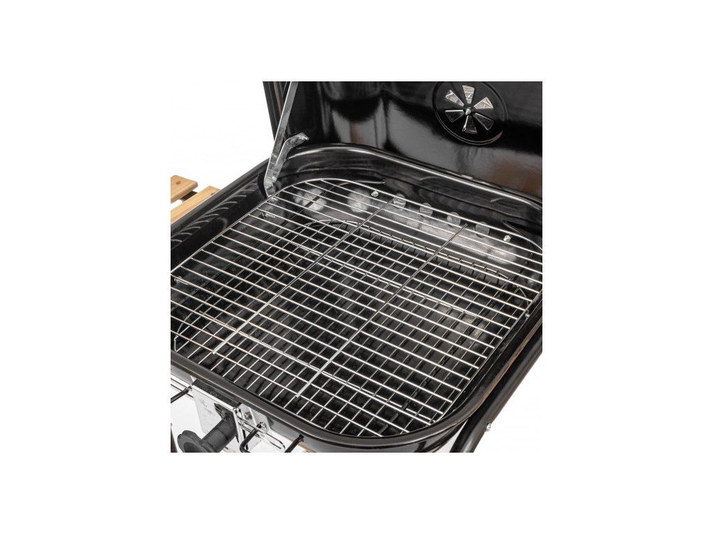 Klasický gril na uhlie s vekom a grilovacou plochou 1600 cm2. Miska grilu je vyrobená z smaltovanej ocele. Oceľové veko s reguláciou prúdu vzduchu udržiava optimálnu teplotu na rošte, vďaka čomu sú pokrmy perfektne prepečené. Regulácia roštu umožňuje prispôsobiť ho druhu pripravovaných pokrmov. Gril je vybavený 3 policami, na ktoré môžete umiestniť potrebné príslušenstvo. Gril je vyrobený s dôrazom na detaily a vydrží niekoľko sezón.