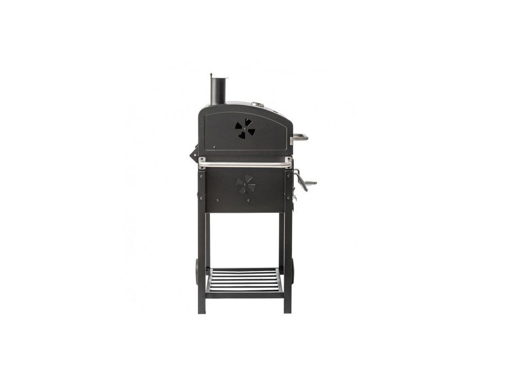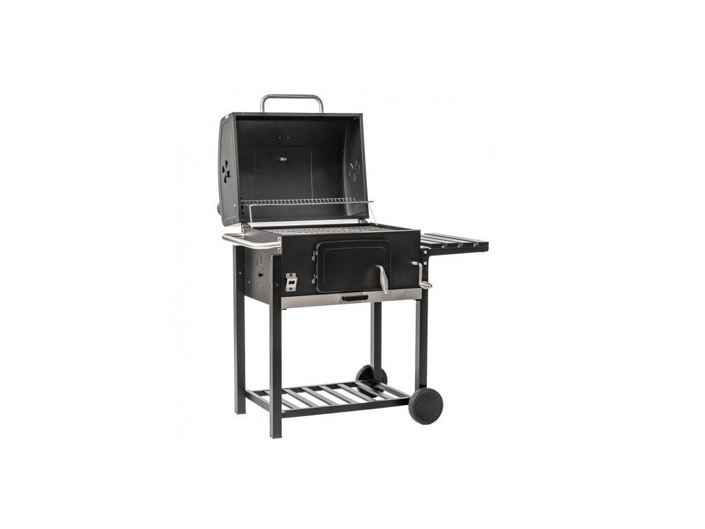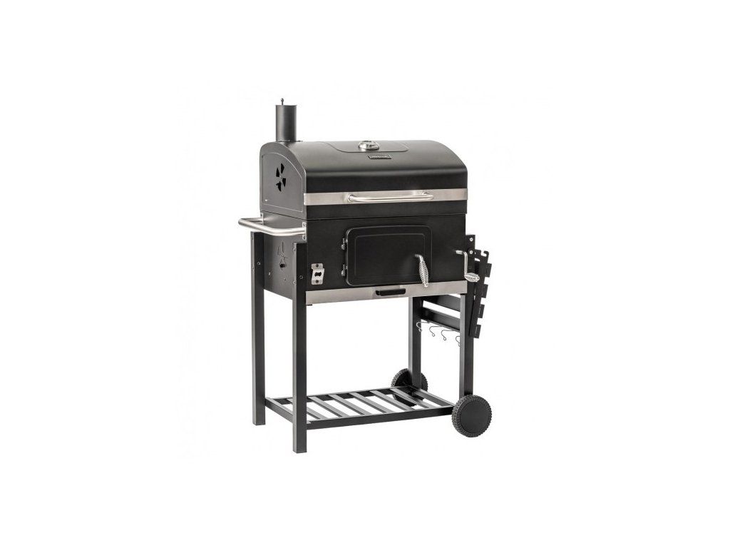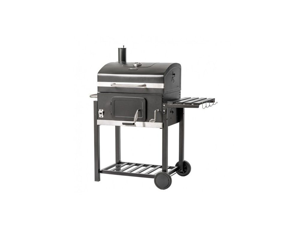 Moderný gril na uhlie, ktorý spája inovatívny dizajn s praktickými funkciami a poskytuje nezabudnuteľné kulinárske zážitky pod šírym nebom. Veko s komínom umožňuje prípravu optimálne prepečených pokrmov. Konštrukcia z práškovo lakovanej ocele zaisťuje vyššiu odolnosť a dodáva gril elegantný vzhľad. Vďaka praktickým kolieskam sa gril ľahko prenáša, čo robí grilovanie ešte mobilnejším.