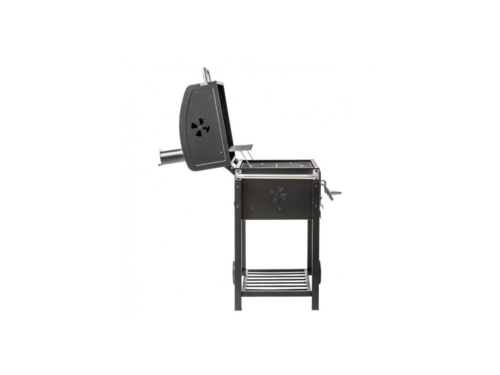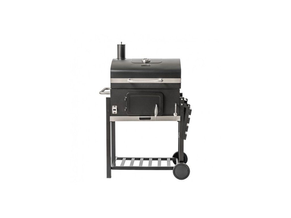 Vďaka teplomeru zabudovanému do veka je ľahké udržiavať kontrolu nad teplotou, čo zaisťuje ideálne podmienky na pečenie mäsa alebo zeleniny. Okrem toho sklopná bočná polica a spodná polica poskytujú pohodlný priestor na prípravu surovín a uloženie potrebného príslušenstva. Otvárač fliaš, prakticky upevnený k rámu, umožňuje otváranie fliaš počas spoločných jedál.