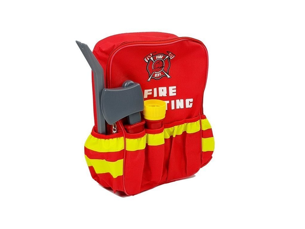 Hasičský batoh má žlté reflexné prvky na červenom pozadí s nápisom, ktorý pripomína hasičskú činnosť. Po bokoch má malé vrecká, do ktorých môžete vložiť užitočné vybavenie. Hasiaci prístroj funguje ako rozprašovač – stačí ho naplniť vodou a hasiť požiare! Megafón sa dá použiť na oznamovanie dôležitých správ a baterka, ktorá je súčasťou sady, sa dá použiť na osvetlenie tmavých uličiek. Váš malý hasič bude z tohto darčeka nadšený a bude sa s ním nekonečne baviť!