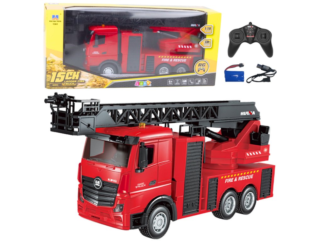 DIAĽKOVO OVLÁDANÉ POŽIARNÉ VOZIDLO S REBRÍKOM HUI NA TOYS 15CH 1:18