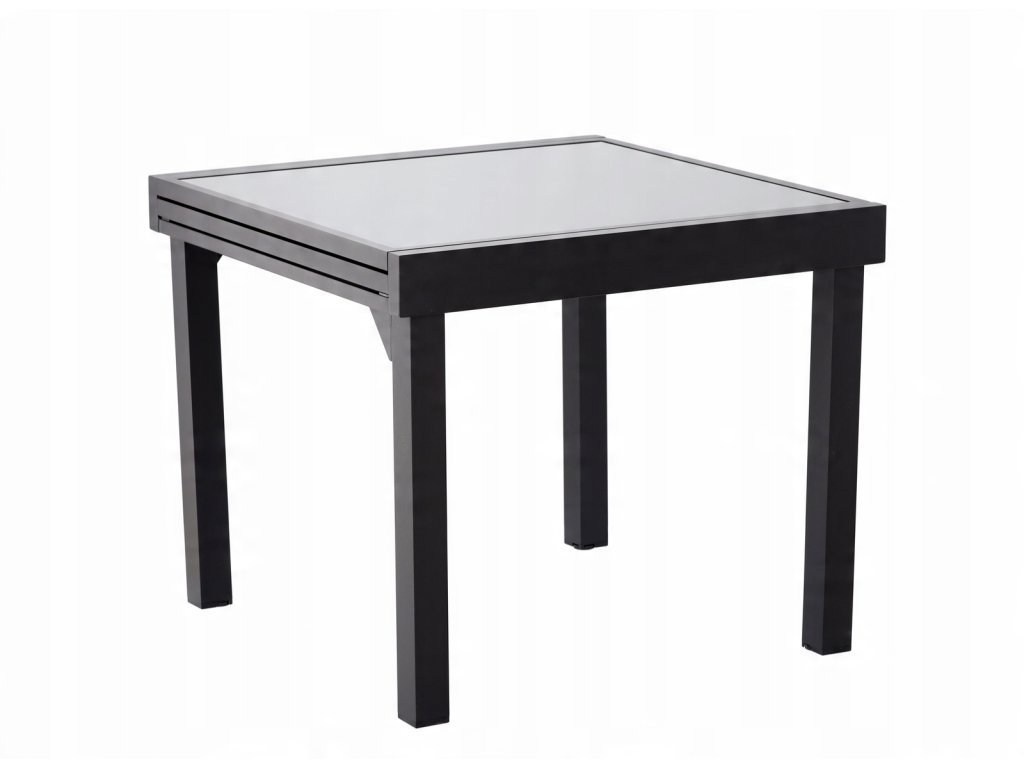 Záhradný stôl s moderným dizajnom, vybavený rozkladacou doskou, ktorá vám umožňuje prispôsobiť jeho veľkosť vašim aktuálnym potrebám. Vyrobený z hliníkového rámu s práškovým náterom, ktorý zaručuje odolnosť a odolnosť voči poveternostným podmienkam.