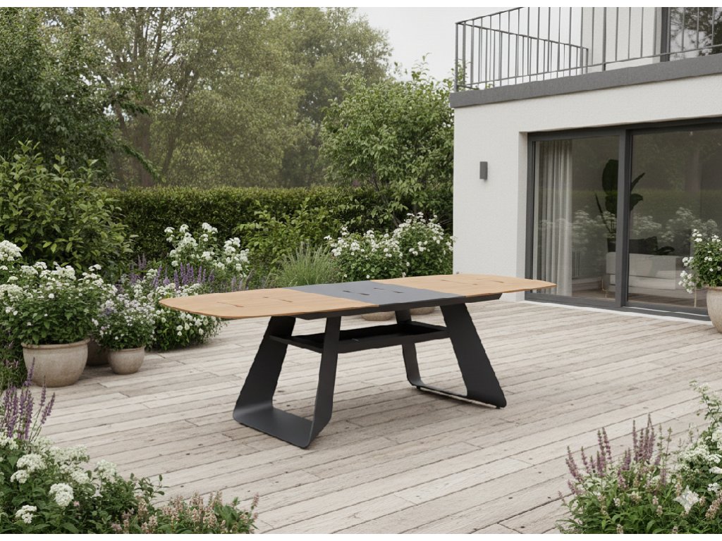 Hliníkový záhradný stôl THOMPSON 180/240 × 90 × 78 cm – moderná funkčnosť a elegancia v šedej farbe