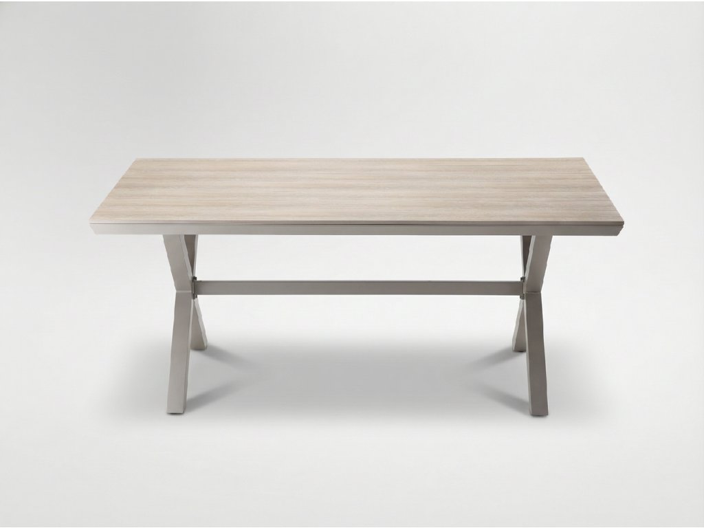 Svetlá béžová farebná kombinácia pôsobí jemne a harmonicky, vďaka čomu sa stôl ľahko začlení do moderných aj klasických exteriérov. Čisté línie a pevné profily nôh 60 × 60 mm zabezpečujú stabilitu a elegantný vzhľad zároveň. Údržba je mimoriadne jednoduchá – povrch stačí utrieť vlhkou handričkou. Tento hliníkový záhradný stôl je ideálnou voľbou pre každého, kto chce investovať do kvalitného a bezúdržbového riešenia pre svoju terasu alebo záhradu.