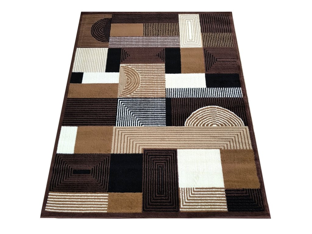 Hnedý koberec s geometrickým vzorom Alfa 18