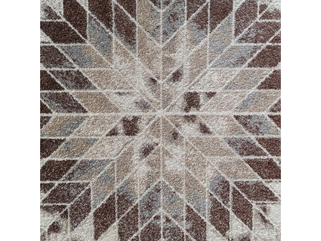 Hnedý okrúhly koberec s geometrickým vzorom Panamero je štýlovým doplnkom, ktorý dodá interiéru teplo a výrazný vizuálny efekt. Precízny geometrický motív v kombinácii hnedých, béžových a sivých tónov vytvára moderný, no zároveň útulný vzhľad.