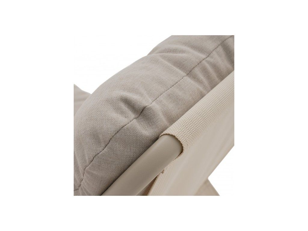 Kreslo poskytuje výnimočný komfort vďaka husto vyplnenému vankúšu z polyesteru. Ten zaručuje mäkkosť a oporu pre telo, ale zároveň vyzerá elegantne a dodáva hojdaciemu kreslu výnimočný charakter. Polyester použitý vo vankúši sa vyznačuje vyššou odolnosťou voči vonkajším podmienkam a ľahkou údržbou.