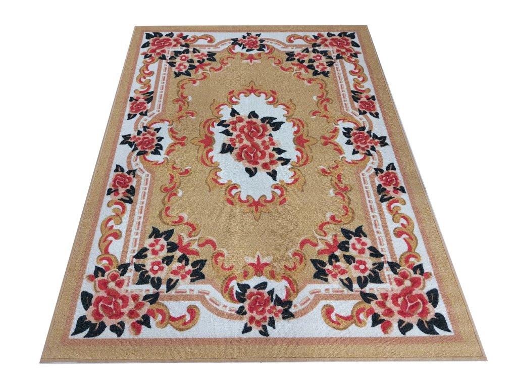 Horčicový koberec s kvetinovým vzorom Dynasty 01 je ideálnou voľbou pre interiéry, ktoré stavajú na tradícii, elegancii a výrazných detailoch. Bohatý ornament s centrálnym motívom ruží vytvára luxusný vizuálny efekt, zatiaľ čo horčicový podklad dodáva priestoru hrejivú a útulnú atmosféru.