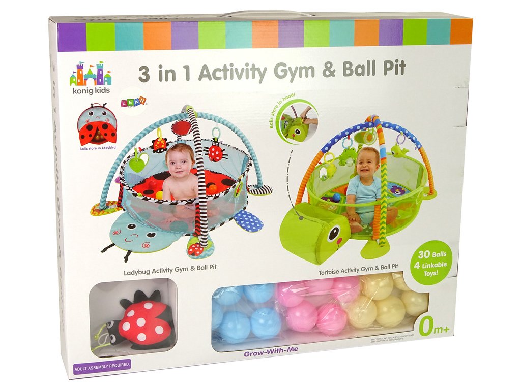 Keď dieťa leží na podložke, rozvíja svoje motorické zručnosti a koordináciu rúk a očí tým, že sa snaží chytiť prívesky. Keď robí svoje prvé kroky, môže sa hrať v ohrádke s loptičkami a bočná sieť vytvára bezpečný priestor.