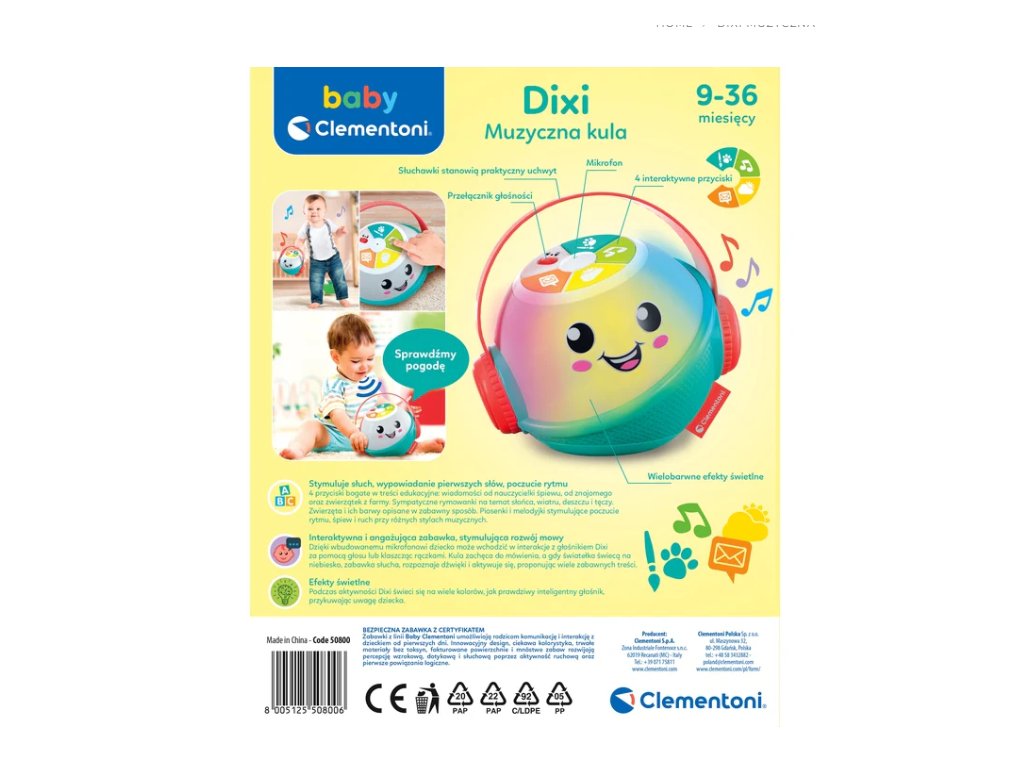 Interaktívna hudobná lopta DIXI Mikrofón Poľský jazyk Clementoni 50800