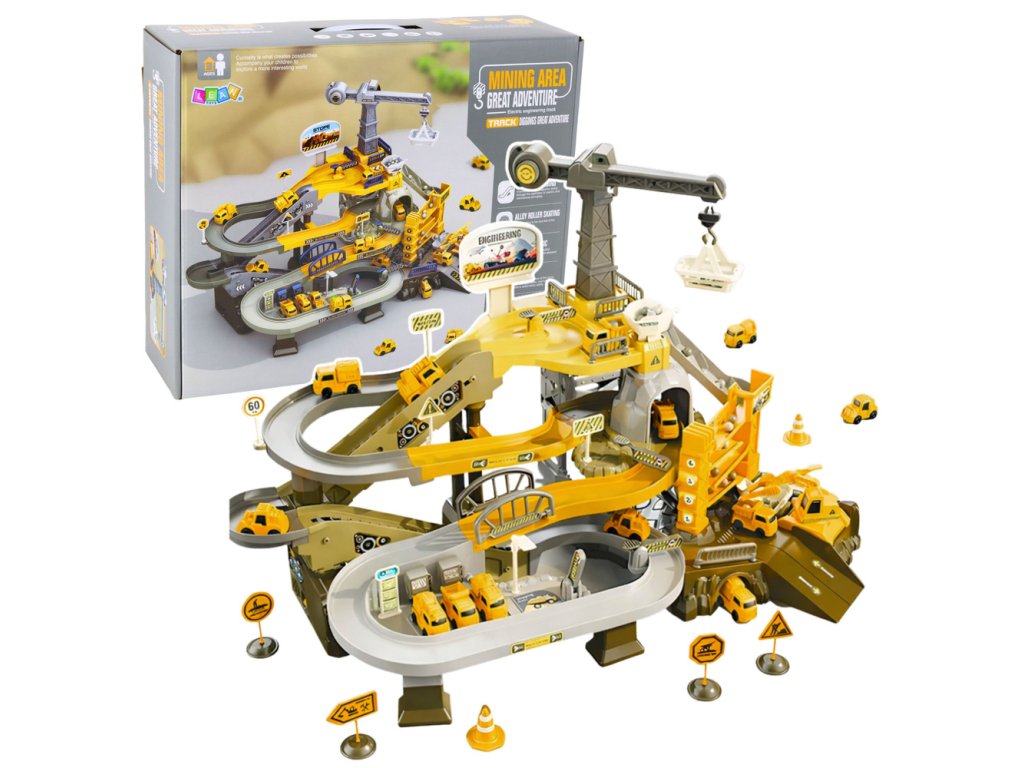 Interaktívna súprava dráhy pre stavebné vozidlá na banskom parkovisku