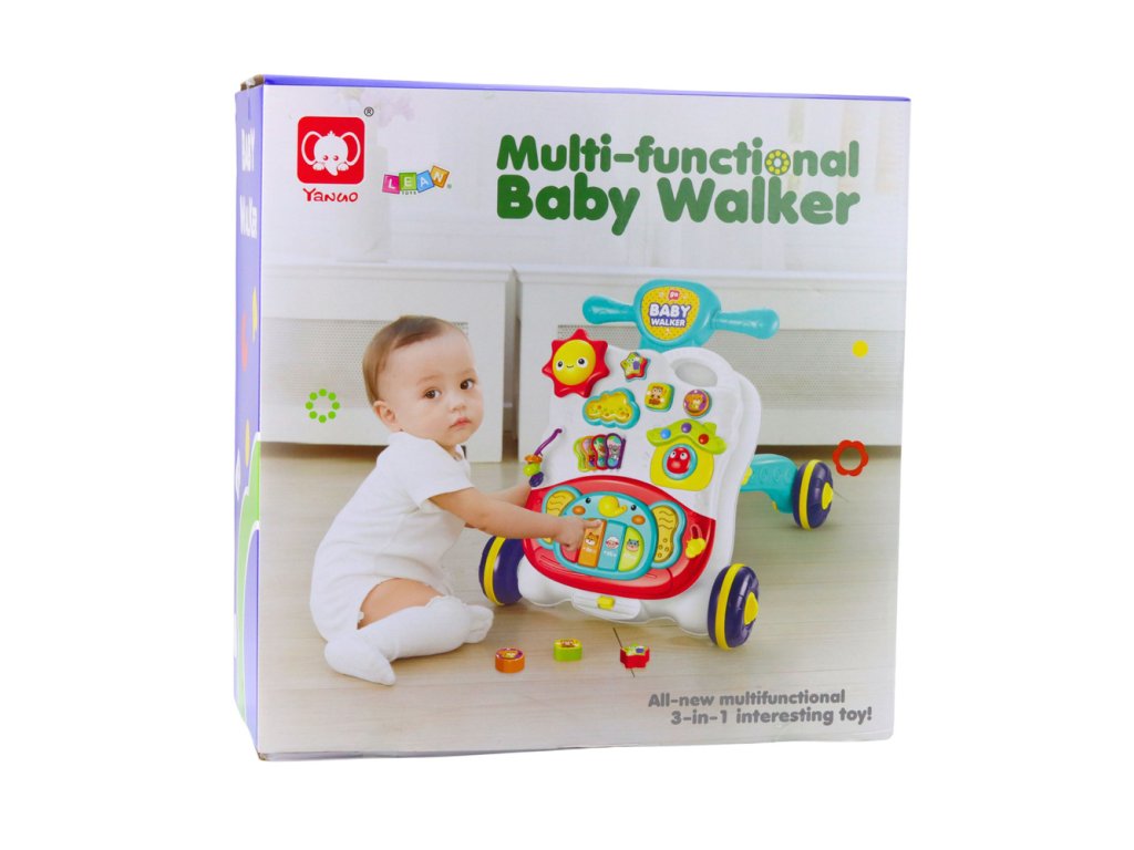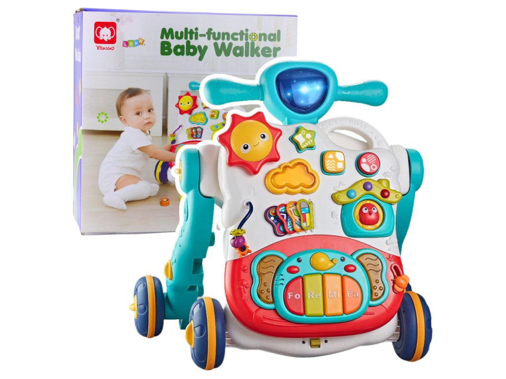 Interaktívna tlačná hračka – 3 v 1 jazdecká hračka je vynikajúca vzdelávacia hračka, ktorá podporuje vývoj vášho dieťaťa od jeho prvých krokov. Vďaka stabilnej konštrukcii, farebným prvkom a bohatým hudobným a svetelným funkciám produkt nielen pomáha vášmu dieťaťu naučiť sa chodiť, ale poskytuje aj hodiny kreatívnej zábavy. Tlačová hračka môže slúžiť na tri účely: ako klasická detská chodítka, vzdelávací panel a hrací stôl. To znamená, že rastie spolu s vaším dieťaťom a prispôsobuje sa jeho veku a vývojovým potrebám.