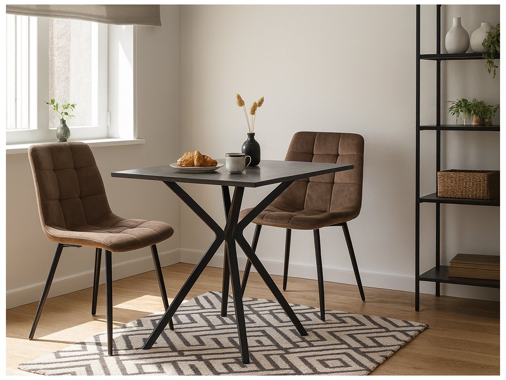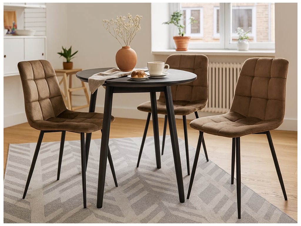 Jedálenská stolička Leon v hnedej farbe vnáša do interiéru teplo, eleganciu a prirodzený vzhľad. Zamatové čalúnenie v kombinácii s jemným prešívaním pôsobí luxusne a zároveň útulne. Stolička je navrhnutá s dôrazom na pohodlie, stabilitu a každodenné používanie.