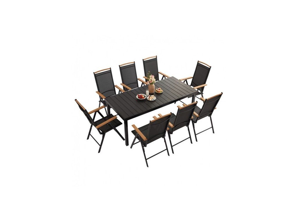 Sada záhradného jedálenského nábytku je skvelou voľbou pre tých, ktorí vo svojej záhrade oceňujú eleganciu a funkčnosť. Sada bola navrhnutá s ohľadom na komfort a estetiku a ponúka pohodlné miesto na stolovanie pod šírym nebom až pre 8 osôb. Táto súprava nie je len praktickým záhradným nábytkom, ale aj výraznou ozdobou vonkajšieho priestoru. Vďaka starostlivému spracovaniu a použitým materiálom táto súprava nielen splní očakávania z hľadiska funkčnosti, ale aj ohromí svojou estetikou a dodá záhrade nový, elegantný rozmer.