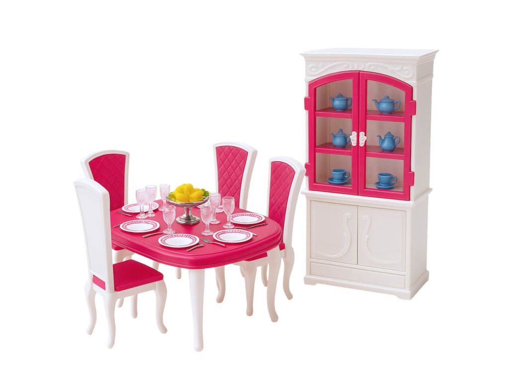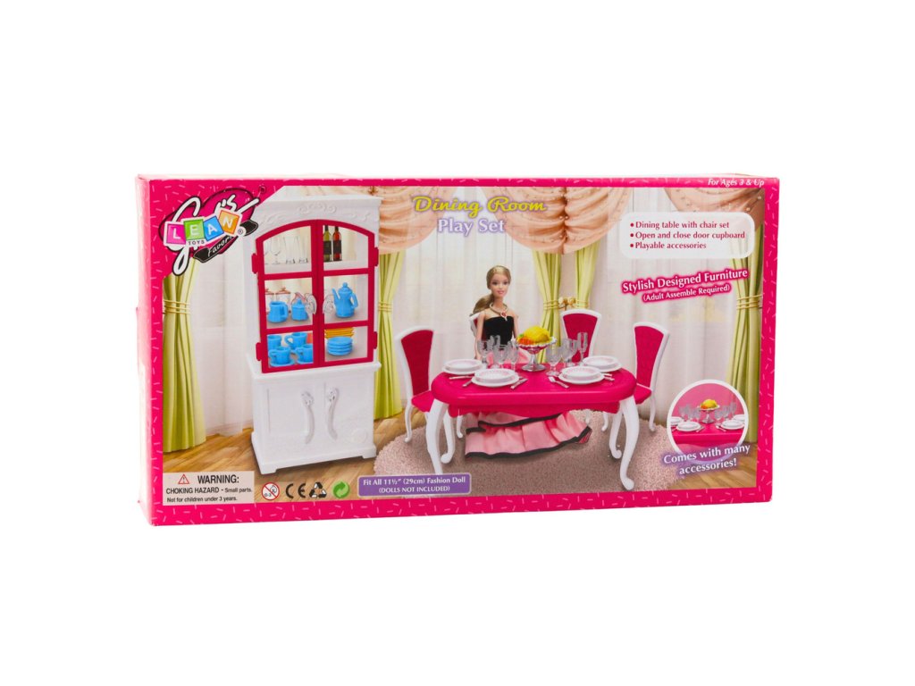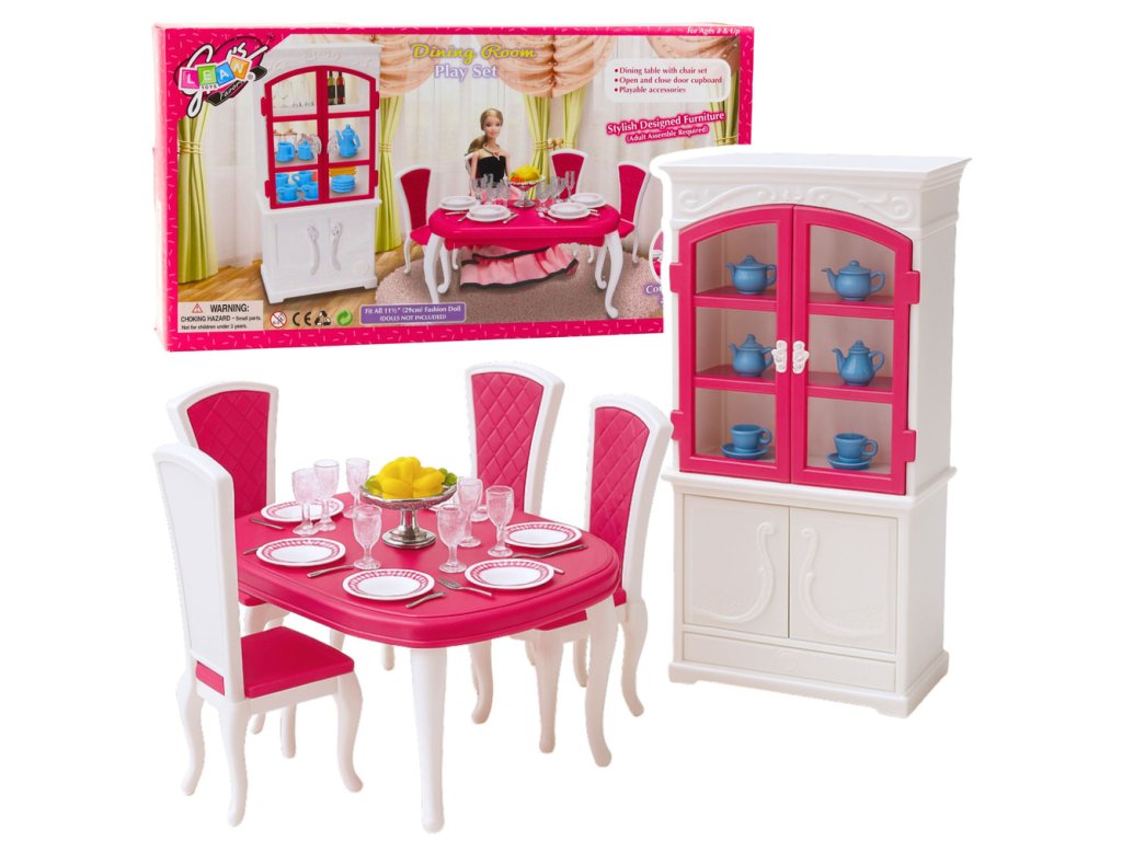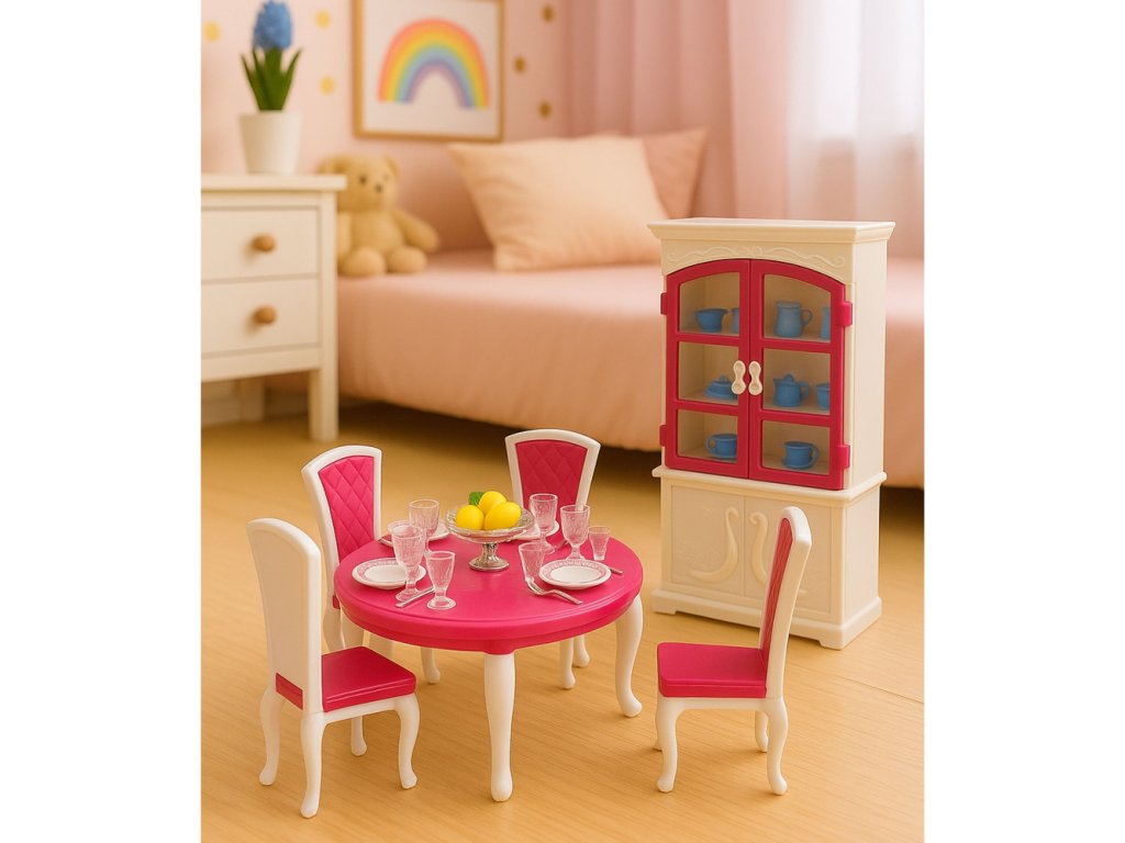 Jedálenský set je elegantná sada nábytku a doplnkov určená na hranie s módnymi bábikami vysokými približne 29 cm. Bol navrhnutý tak, aby verne kopíroval prvky skutočnej jedálne, čo deťom umožňuje vytvárať realistické scény súvisiace s prípravou jedál, zabávaním hostí a spoločným stolovaním s rodinou. Stredobodom súpravy je veľký stôl so súpravou stoličiek, kde bábika môže „podávať“ rôzne jedlá a organizovať formálne večere.