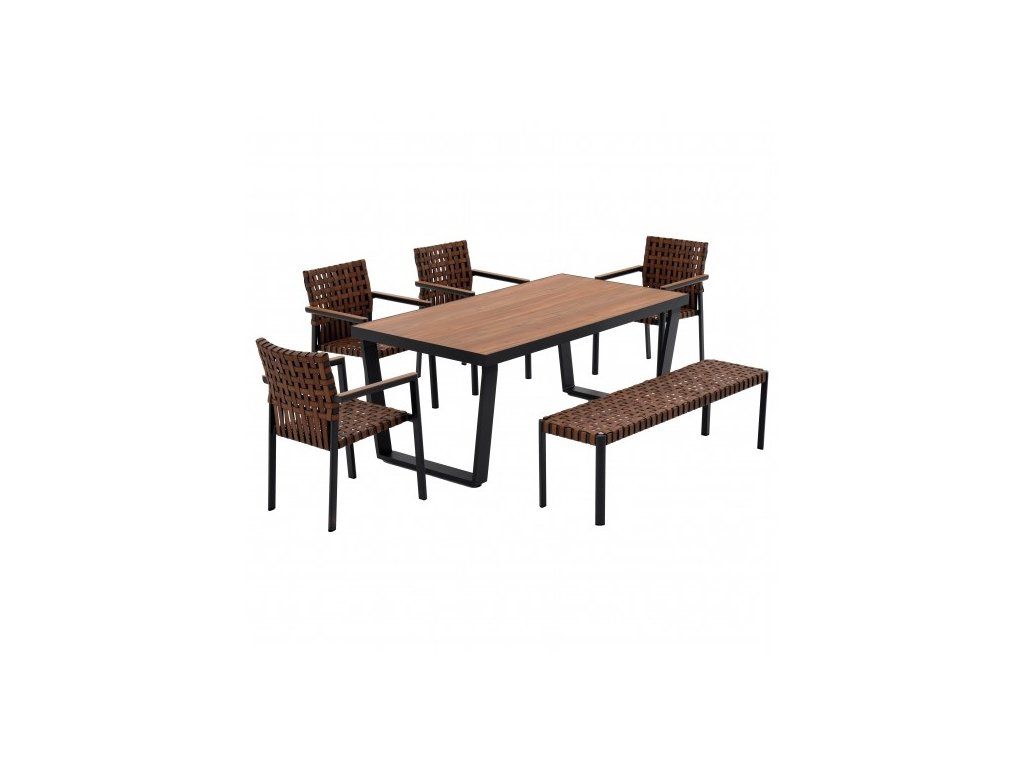 Sada jedálenského nábytku pre 6 osôb v štýle modern country je ponukou pre milovníkov vidieckej atmosféry. Sadu s veľkým stolom, 4 stoličkami a lavicou je možné ľubovoľne kombinovať. Rám nábytku je vyrobený z hliníka a práškovo lakovaný, čo sa prejavuje na odolnosti celého nábytku. Sedadlá z prúteného syntetického ratanu zaručujú pohodlný odpočinok. Použité materiály sa vyznačujú väčšou odolnosťou voči vlhkosti a nepriaznivým poveternostným podmienkam, vďaka čomu nábytok vydrží dlhšie.