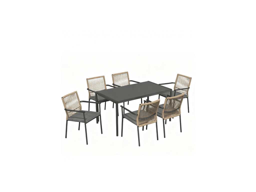Jedálenský set VENCE sa skladá zo stola a šiestich stoličiek s podrúčkami, určených na použitie v záhradách, na terasách a v gastronomických priestoroch. Klasický dizajn v kombinácii s funkčným usporiadaním umožňuje pohodlné používanie tak v súkromných, ako aj komerčných priestoroch.