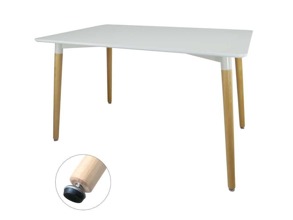 Lakovaná MDF doska je odolná, ľahko udržiavateľná a vhodná na každodenné používanie. Stabilná konštrukcia zabezpečuje pevnosť a dlhú životnosť stola, zatiaľ čo protišmykové nožičky chránia podlahu. Jedálenský stôl Tessa v bielej farbe je ideálny do jedálne, kuchyne aj moderného pracovného priestoru.