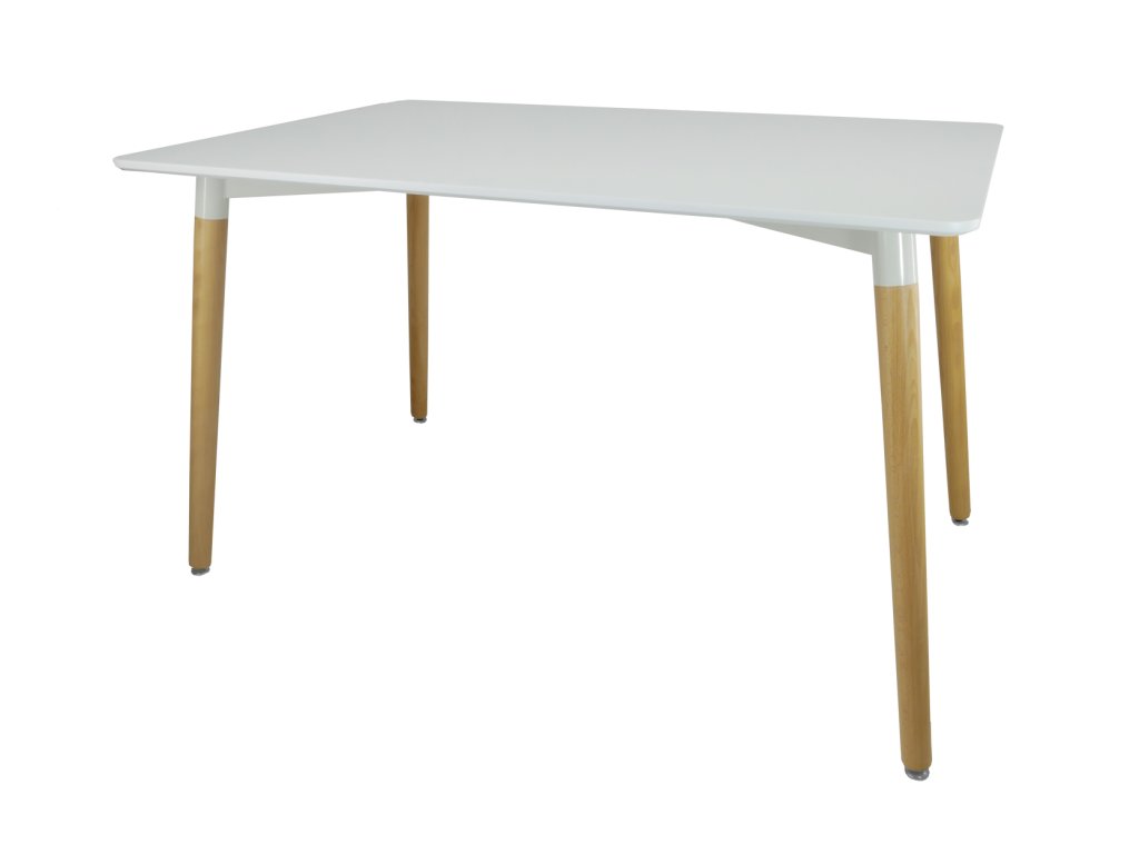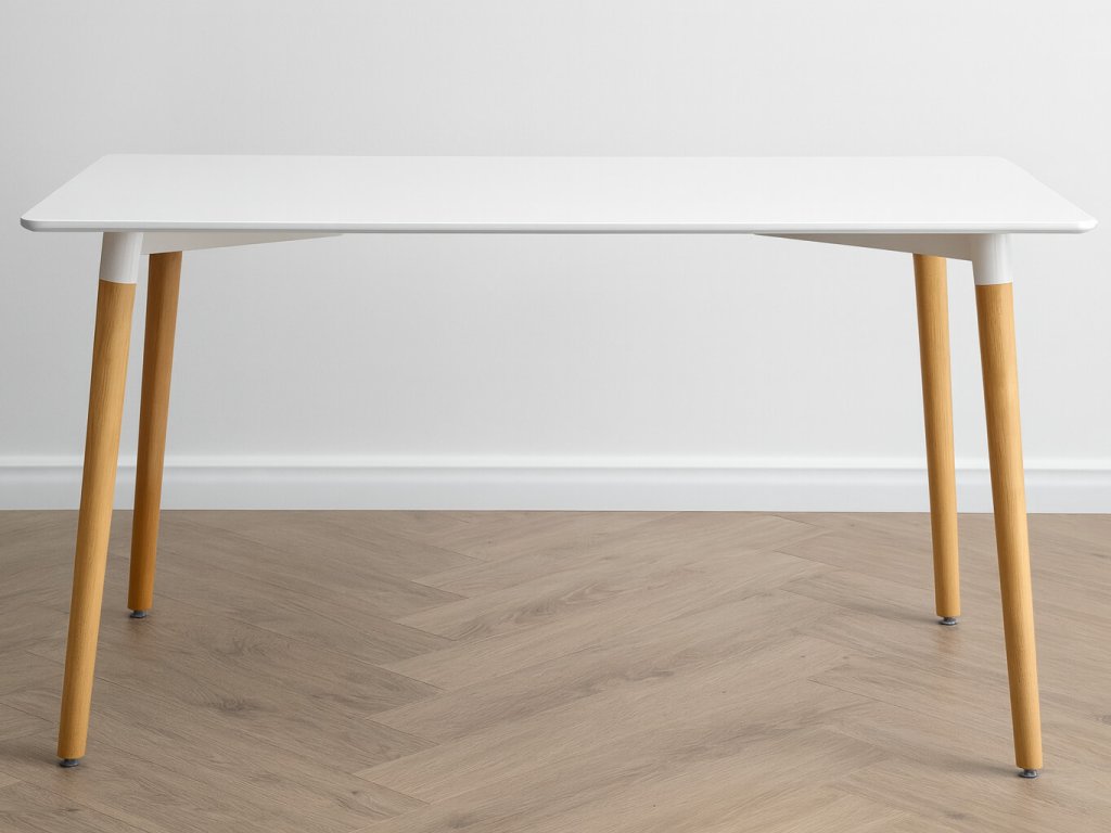 Jedálenský stôl Tessa v bielej farbe je elegantným riešením pre svetlé a vzdušné interiéry. Biely povrch opticky zväčšuje priestor a dodáva miestnosti čistý, harmonický vzhľad. V kombinácii s drevenými nohami vytvára jemný kontrast typický pre škandinávsky dizajn.