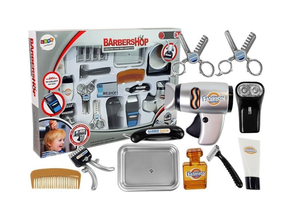 Ak vaše dieťa sníva o vlastnom kaderníckom salóne, táto hračka je pre neho ako stvorená. Skvelá sada pre malých kaderníkov a holičov, vhodná pre dievčatá aj chlapcov. Teraz si každé dieťa môže zahrať na kaderníka alebo holiča. Všetky prvky sady sú vyrobené z bezpečného plastu. Keď stlačíte čiernu rukoväť na fénu, spustí sa farebný rotujúci bubon vo vnútri, zatiaľ čo keď pohnete bočným tlačidlom na strojčeku, ozve sa zvuk podobný zvuku strihania vlasov.