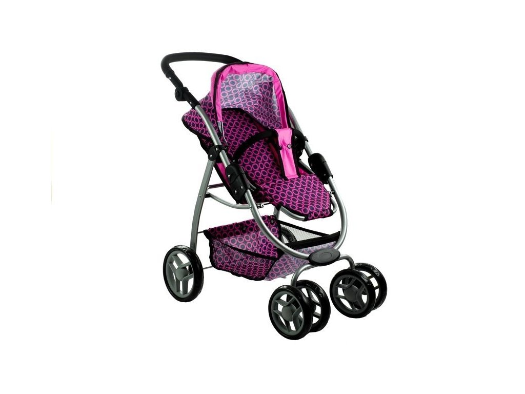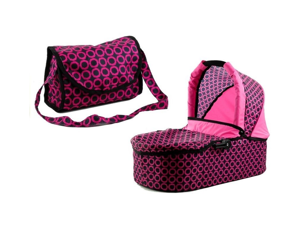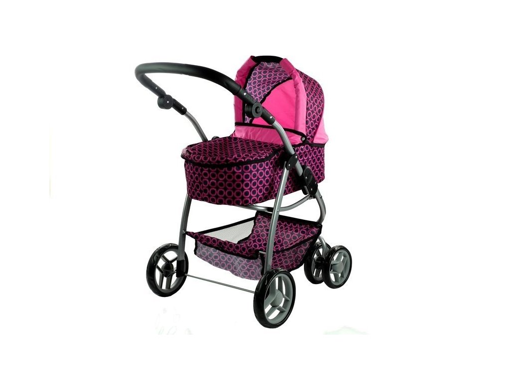 Multifunkčný kočík pre bábiky Alice – ružovo-čierny s kolieskami