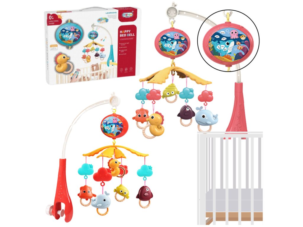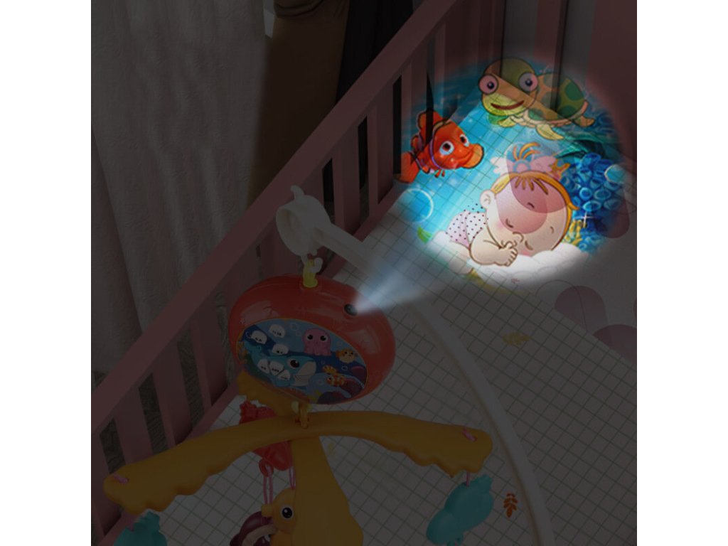 Mobil má zabudovaný projektor, ktorý premieta obrazy podmorského sveta na strop a vytvára tak v detskej izbe nádhernú, upokojujúcu atmosféru. Zábavné zvieratká rozveselia vaše dieťa a funkcia automatického vypnutia po nastavenom čase umožňuje oddýchnuť si aj rodičom.