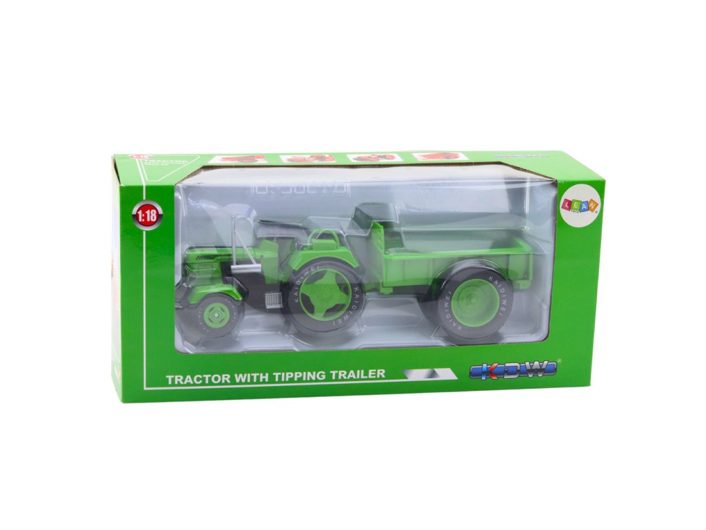 Kovový poľnohospodársky traktor s prívesom zelený 1:18