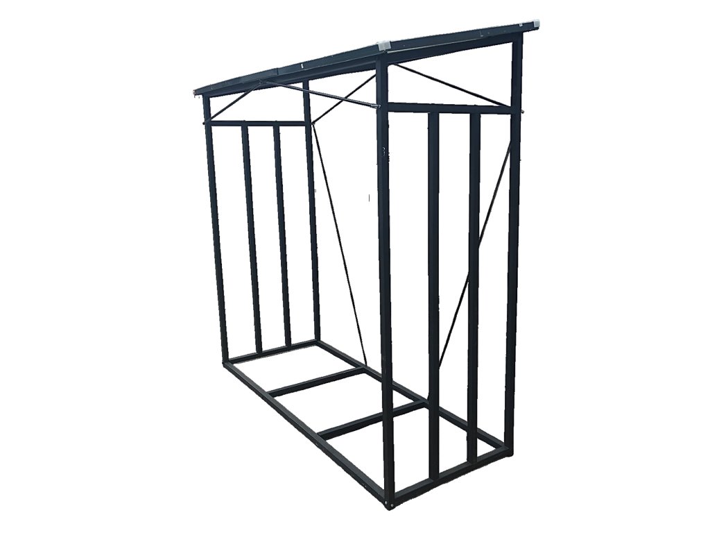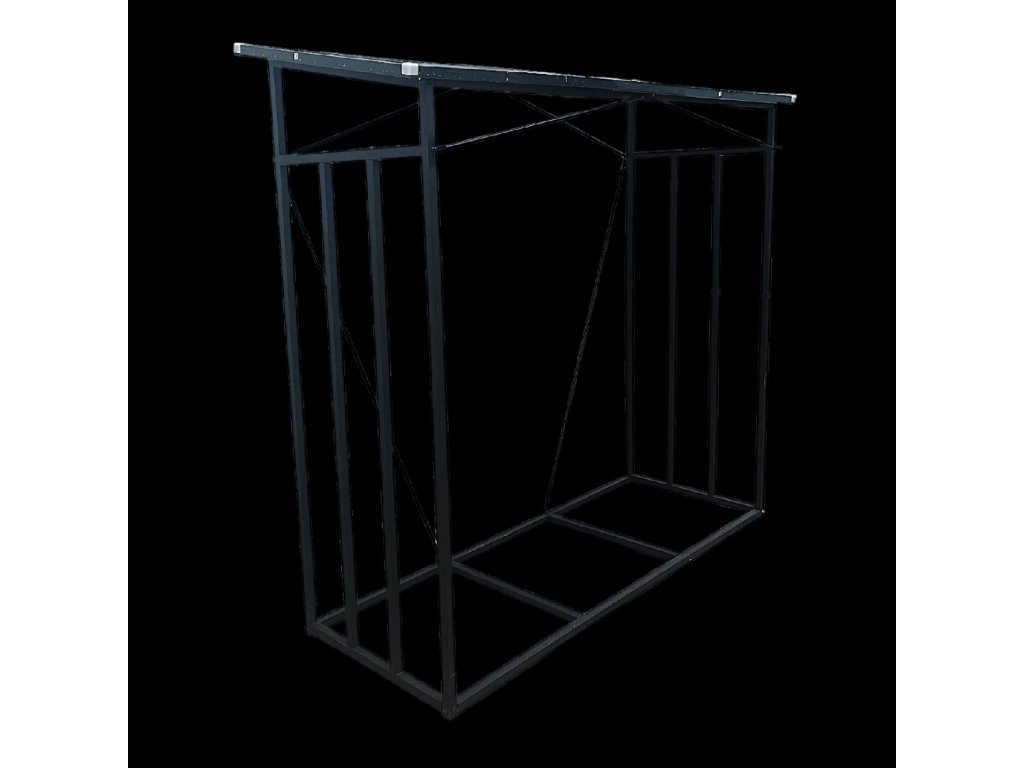 KOVOVÝ STOJAN S STRECHOU NA DREVO 185 cm x 70 cm x 185 cm