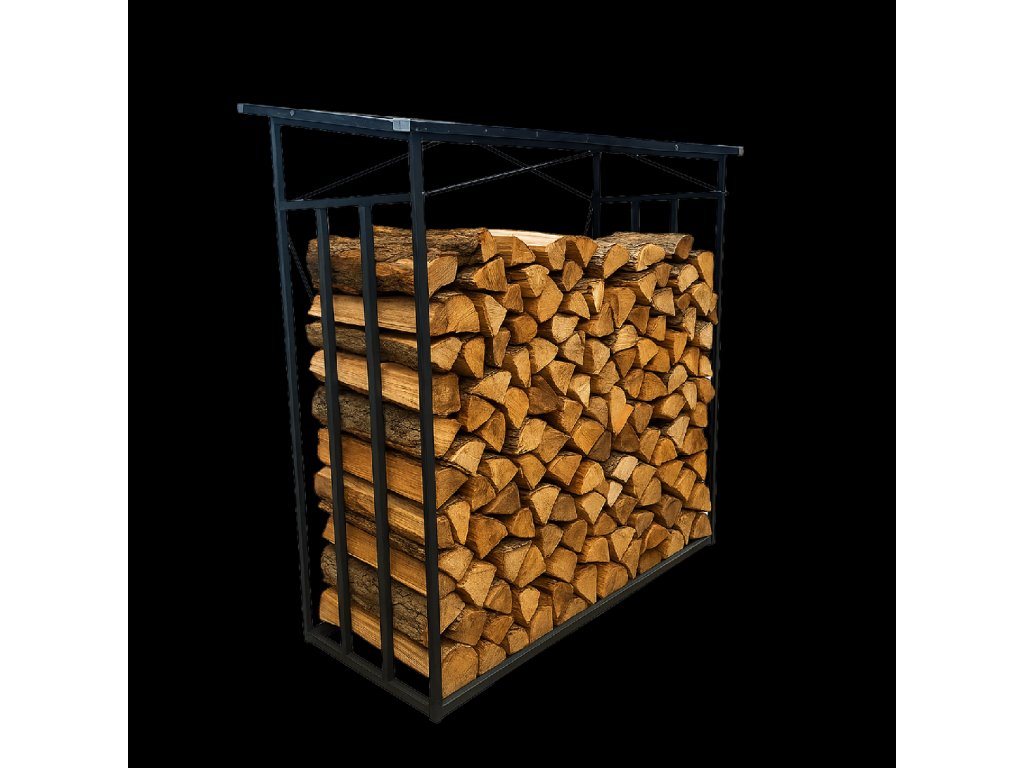 Stojan je vybavený vlnitou strechou, ktorá chráni drevo pred dažďom a snehom. Vďaka tomu zostáva drevo suché.