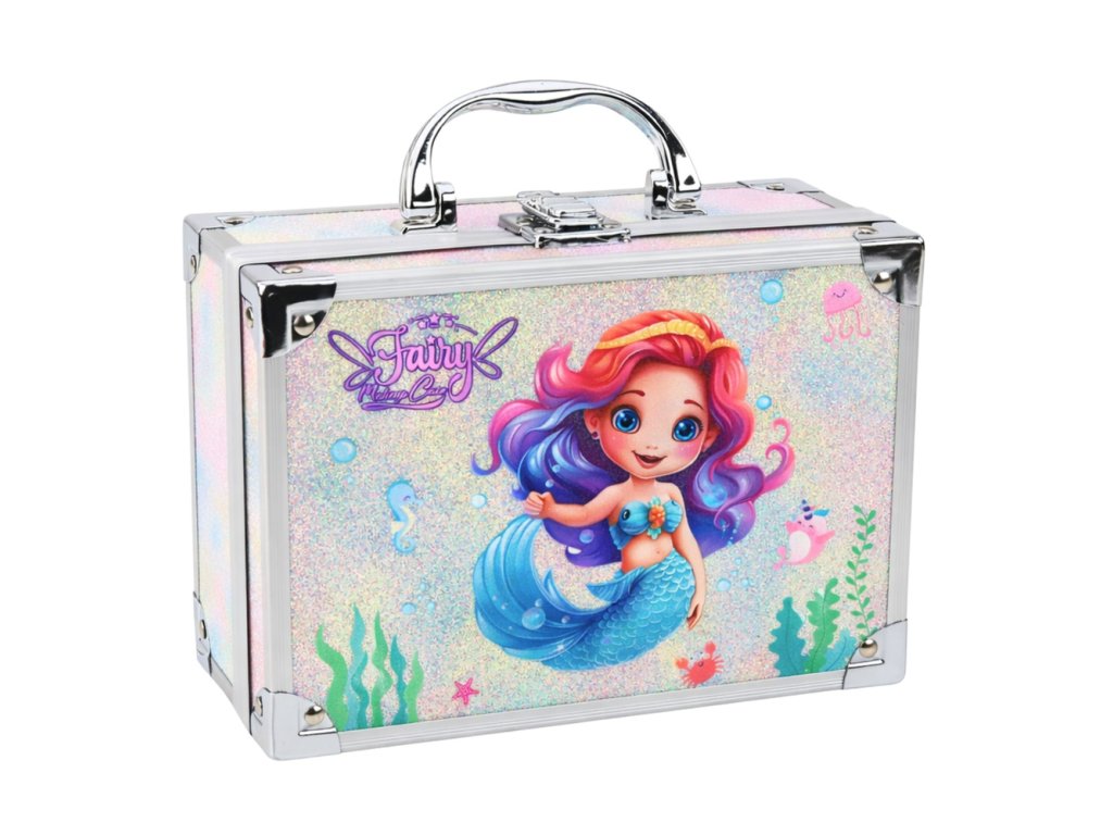 Trblietavá kozmetická taštička MERMAID je jedinečná sada na nechty a make-up určená pre deti, ktoré milujú kreatívne hry a farebný svet stylingu.