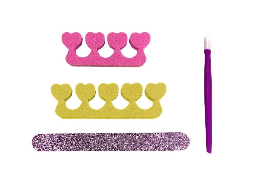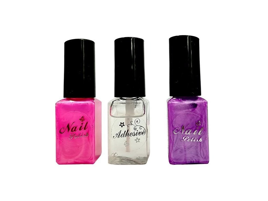 - 3 farby lakov na nechty: žltá, ružová, číra