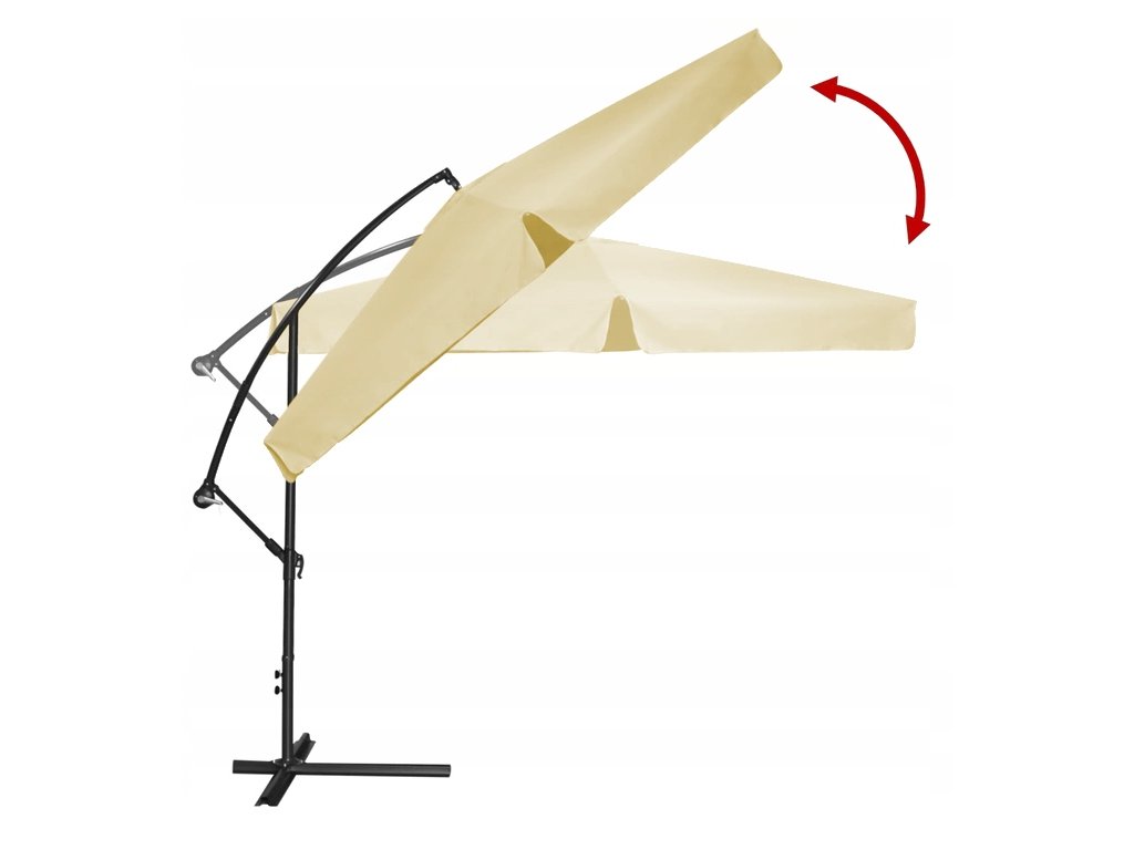 Poťah z kvalitného polyesteru 180 g/m² je nepremokavý, UV odolný a nenáročný na údržbu. Praktický kľukový mechanizmus zabezpečuje jednoduché rozkladanie a skladanie, zatiaľ čo nastaviteľný sklon umožňuje prispôsobiť tienenie podľa polohy slnka. Súčasťou balenia je aj vodeodolný ochranný obal, ktorý predlžuje životnosť slnečníka počas skladovania. Predĺžená predná opora zvyšuje stabilitu konštrukcie – pre maximálnu bezpečnosť sa odporúča dodatočné zaťaženie alebo upevnenie k podkladu.