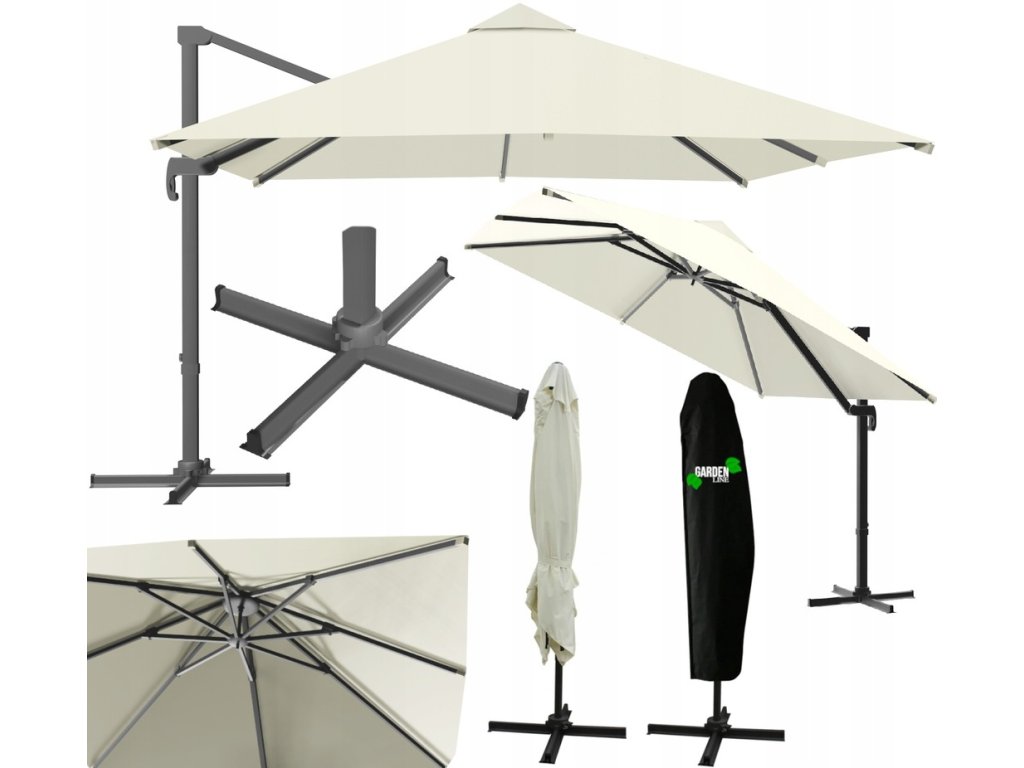 Krémový záhradný slnečník Roma s obalom - 3x3m