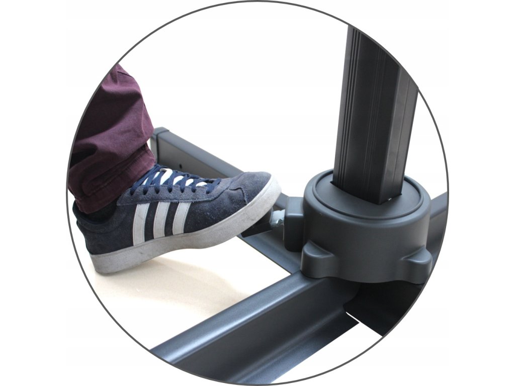 Slnečník je vyrobený z kvalitnej Oxford polyesterovej tkaniny s PU povrchovou úpravou (250 g/m²), ktorá je vodoodolná, pevná a odolná voči vyblednutiu. Stabilitu zabezpečuje robustná hliníková konštrukcia s práškovým lakovaním, ktorá je odolná voči korózii a poveternostným podmienkam. Vďaka 8 hliníkovým rebrám je konštrukcia pevná a bezpečná aj pri častejšom používaní.