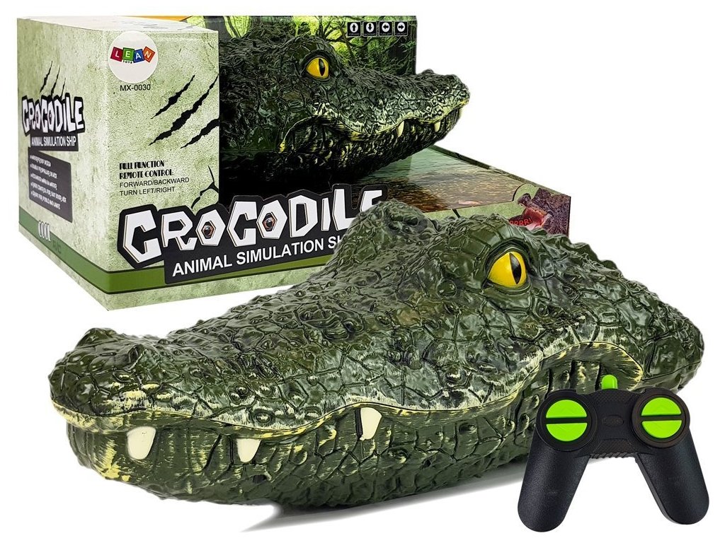 Tvar krokodílej hlavy je veľmi realisticky reprodukovaný. Ostré a hladké zuby, žlté oči a zelená koža pokrytá šupinami pripomínajú skutočného krokodíla. Táto verzia je veľmi desivá, ideálna na hranie v letných večeroch pri rybníku alebo v bazéne. Diaľkové ovládanie poteší a rozvíja manuálne zručnosti vášho dieťaťa.