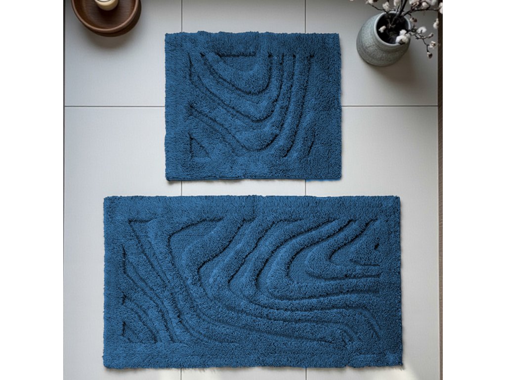 Premeňte svoju kúpeľňu na štýlový a komfortný priestor s kúpeľňovou sadou koberčekov Boston 11 v tmavomodrej farbe. Tento dvojdielny set kombinuje moderný dizajn s praktickosťou a upúta pozornosť plastickým vlnkovaným vzorom, ktorý dodáva priestoru textúru a vizuálny rytmus. Hlboká tmavomodrá farba pôsobí elegantne a harmonicky, vytvára príjemný kontrast k svetlým obkladom či sanitárnemu vybaveniu.