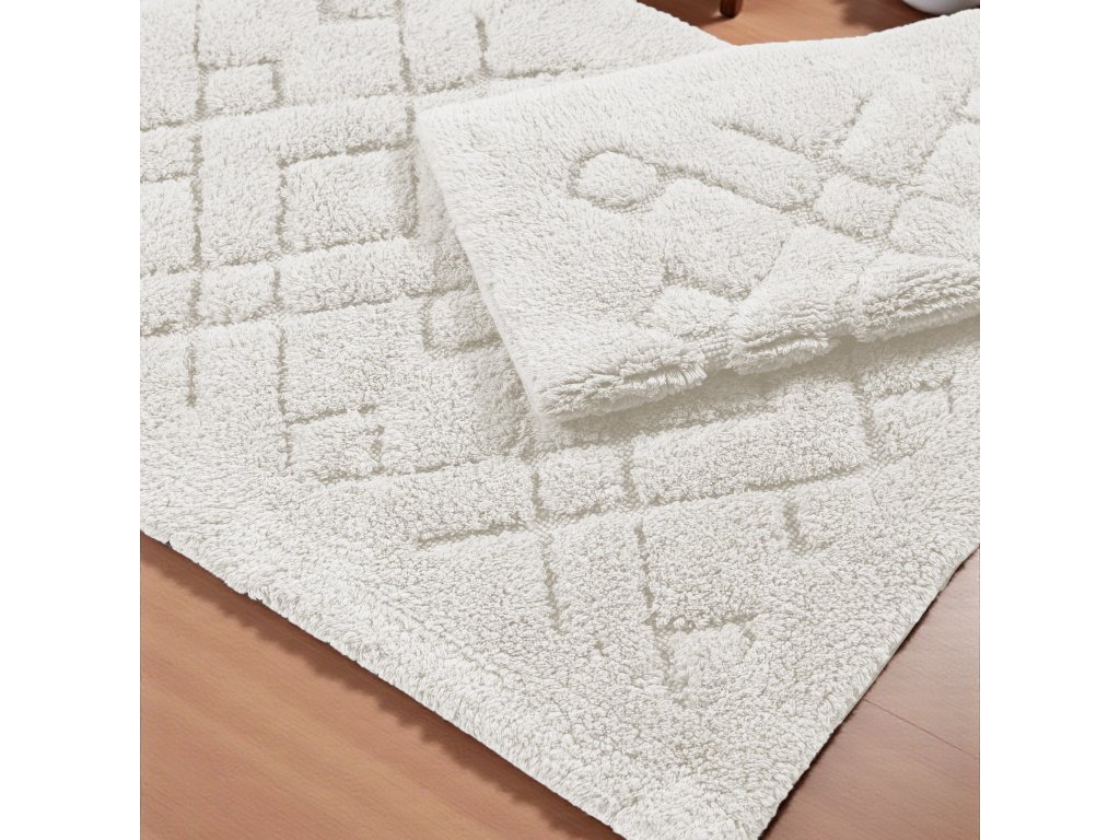 Vneste do svojej kúpeľne pocit čistoty a luxusu s kúpeľňovou sadou koberčekov Boston 12 v krémovej farbe. Tento dvojdielny set s plastickým geometrickým kosoštvorcovým vzorom kombinuje nadčasový dizajn s komfortom, pričom dodáva priestoru svetlý, elegantný a harmonický vzhľad. Krémový odtieň pôsobí jemne a sofistikovane, vhodný do klasických aj moderných kúpeľní, kde vytvára pocit čistoty a útulnosti.
