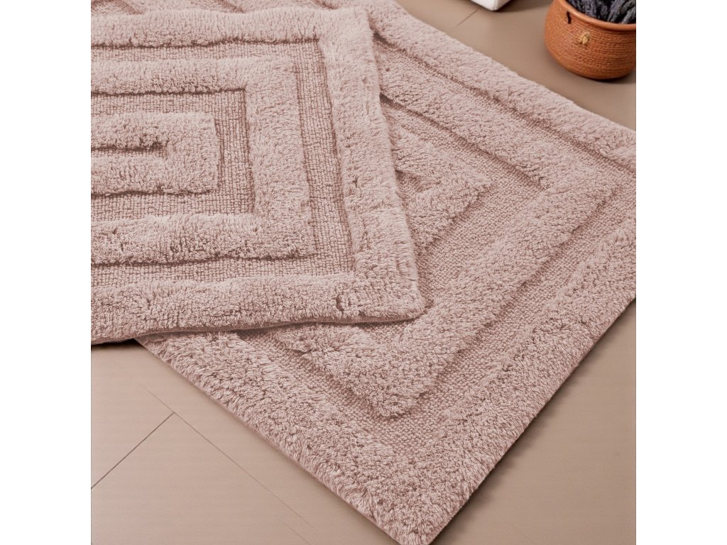 Kúpeľňová sada koberčekov Boston 13 v ružovej farbe vnáša do kúpeľne jemnosť, pohodu a nádych elegancie. Púdrovo ružový odtieň pôsobí mäkko a harmonicky, vďaka čomu dokáže priestor opticky zjemniť a zútulniť. Reliéfny geometrický vzor v podobe obdĺžnikov dodáva koberčekom moderný charakter bez toho, aby pôsobil rušivo.