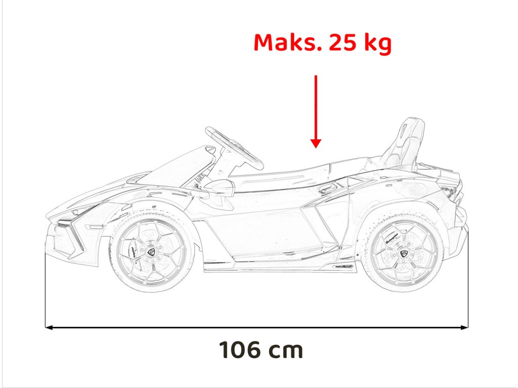 | Rozmery vozidla: | Dĺžka 106 cm,Šírka 60 cm,Výška 36 cm |
